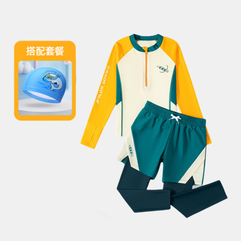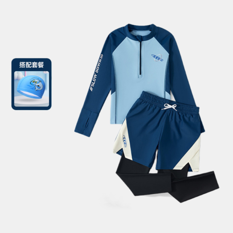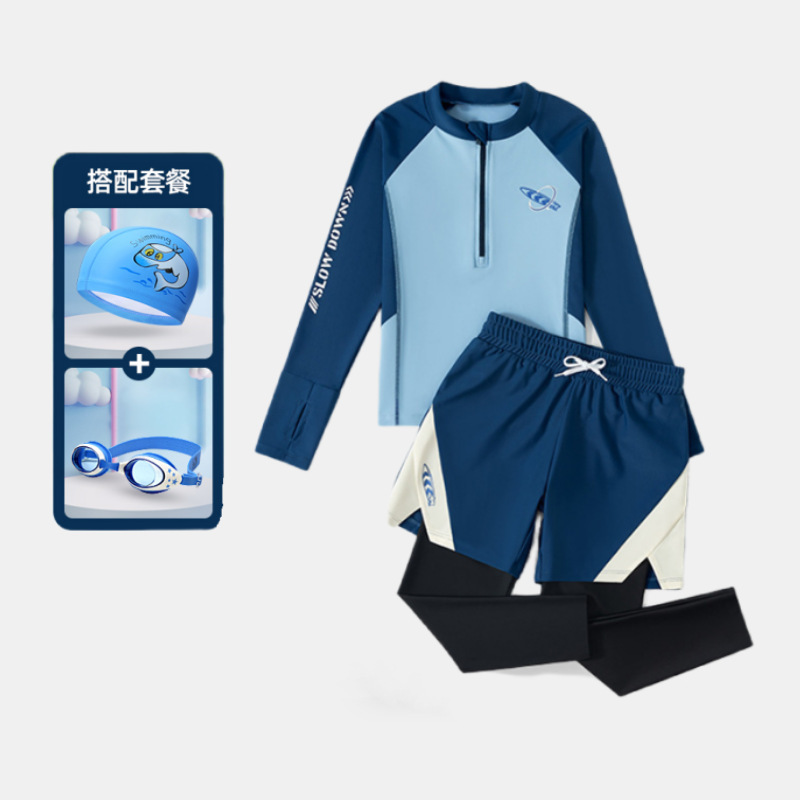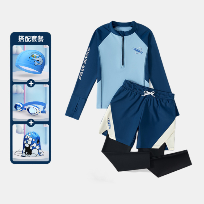 어린이 수영복 소년용 분리형 긴팔 긴바지 자외선 차단 수영복 2025 신형 중대형 어린이 남아 수영복 장비스토어 가기