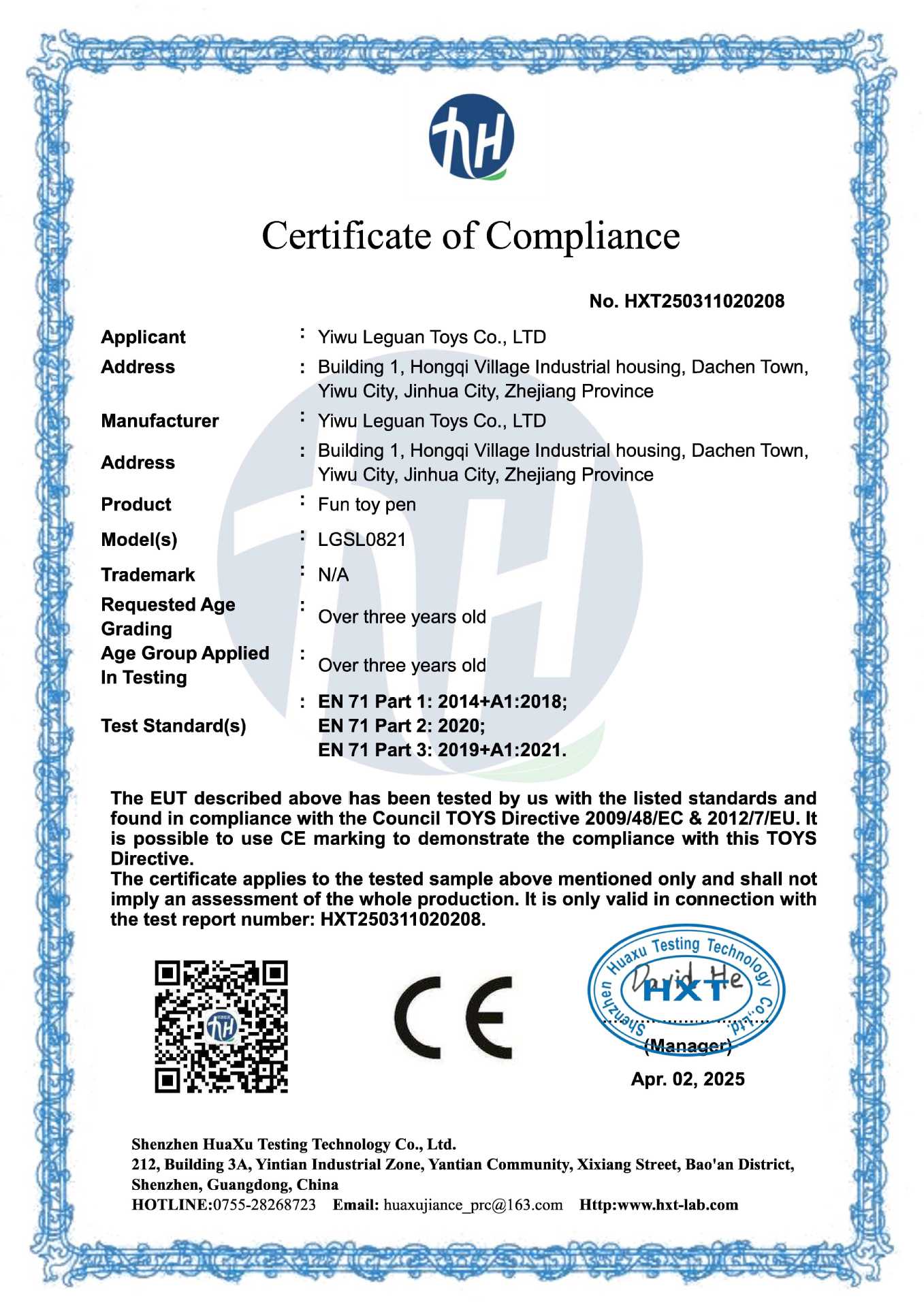 TAPL Hanyun International Trade , West Gate of Weihai Logistics Park, Bekart Road-91, Xiyuan Street, Huancui District, Weihai City, Shandong Province,CHINA (ZIPCODE 264200)