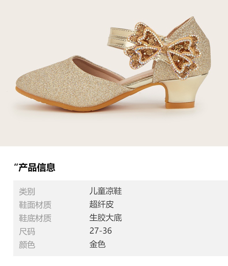 2026 신상 신발 새로운 하이힐 뾰족코 리본 중공 공주 샌들 여자아이 공연 신발 판타지