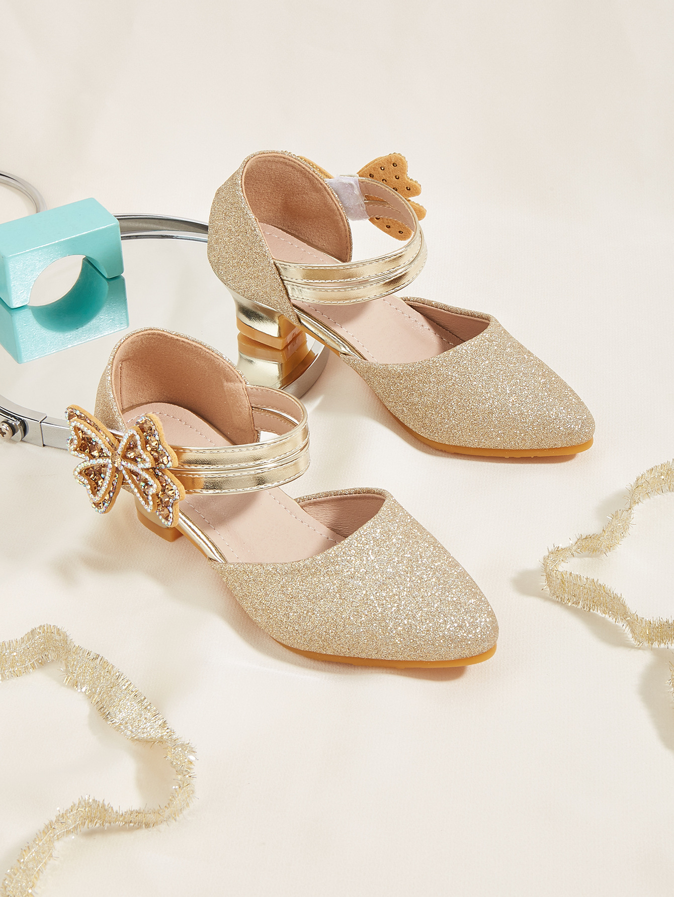 2026 신상 신발 새로운 하이힐 뾰족코 리본 중공 공주 샌들 여자아이 공연 신발 판타지스토어 가기