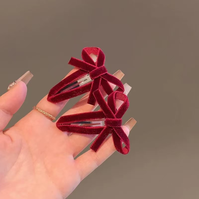 한국 벨벳 중공 BB 클립 패션 절묘한 뱅 헤어핀 헤어핀 레드 헤어 액세서리 분위기 클립스토어 가기