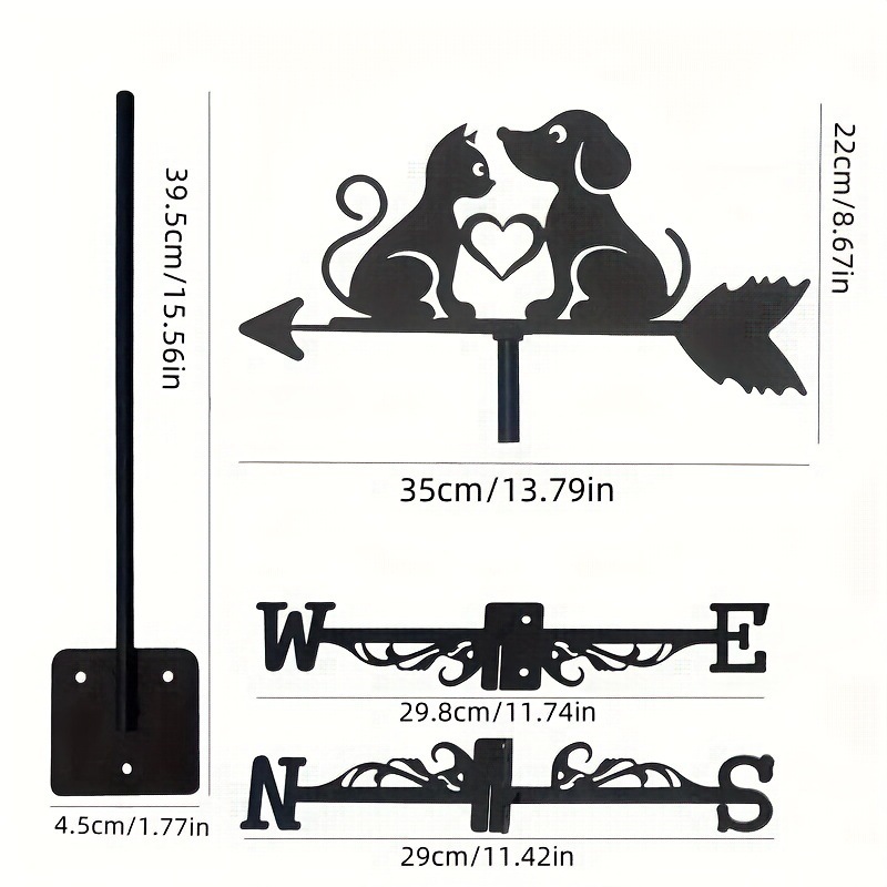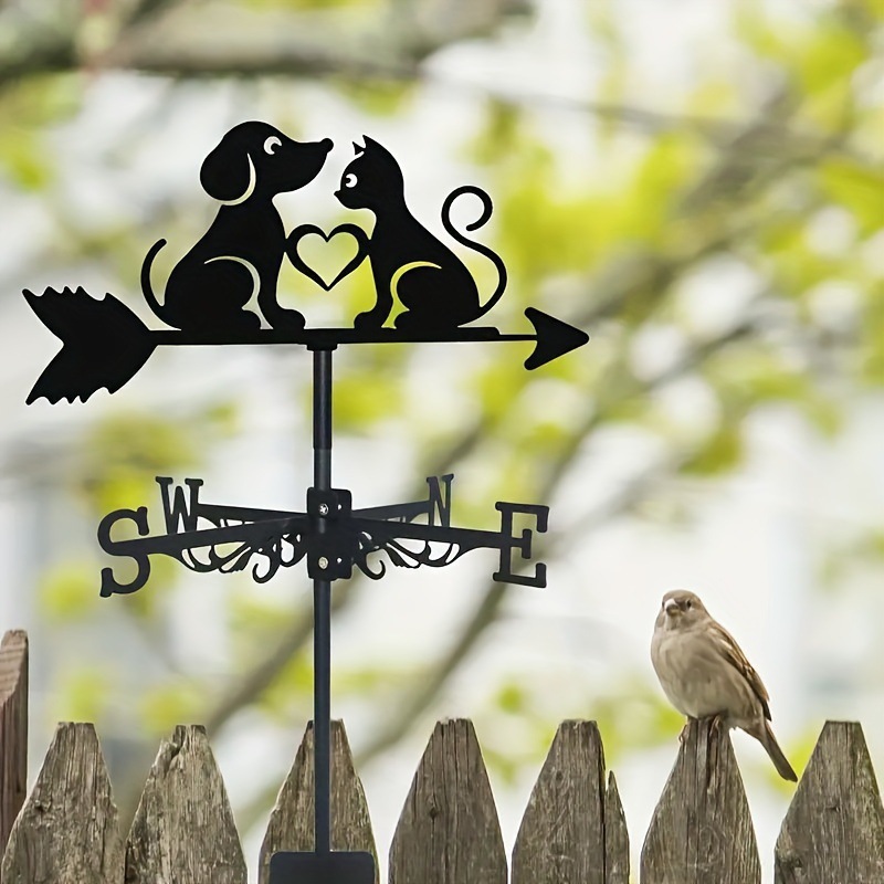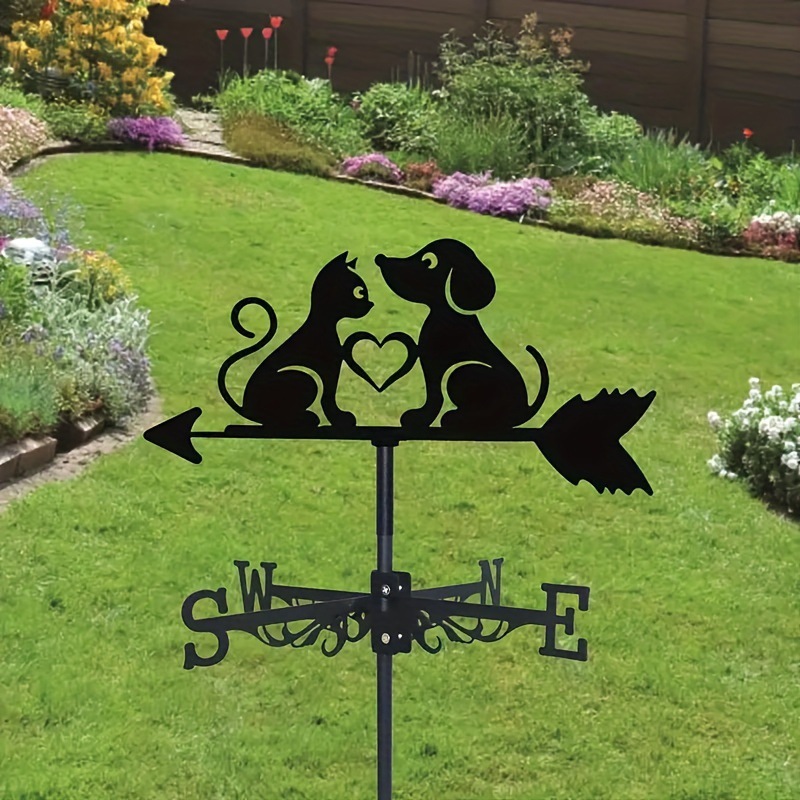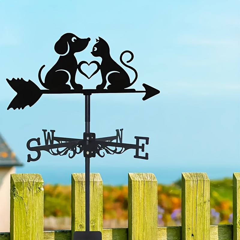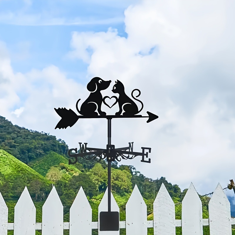 국경 간 고양이와 개 날씨 베인 장식품 안뜰 야외 철 금속 공예 날씨 베인 야외 장식스토어 가기