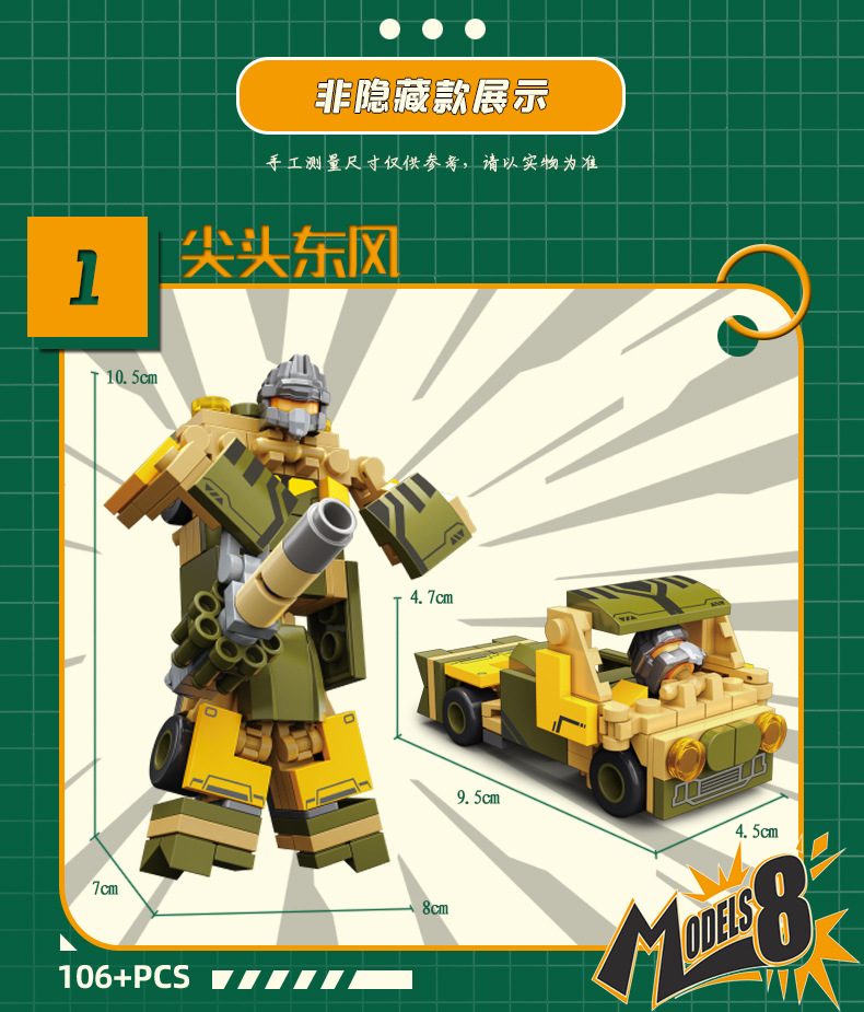 本商品为颗粒拼插类玩具。能拼装成图片中显示的模型。盒内附有详细拼装图解。让宝宝充分发挥想像力,找到更多有趣的组合方法。通过立体形象的拼装还锻炼了动手能力和空间思维能力。对各图形的认识也有所帮助(图片与实物可能有所不同 请以实物为准)