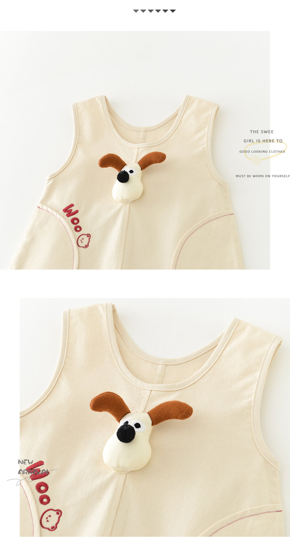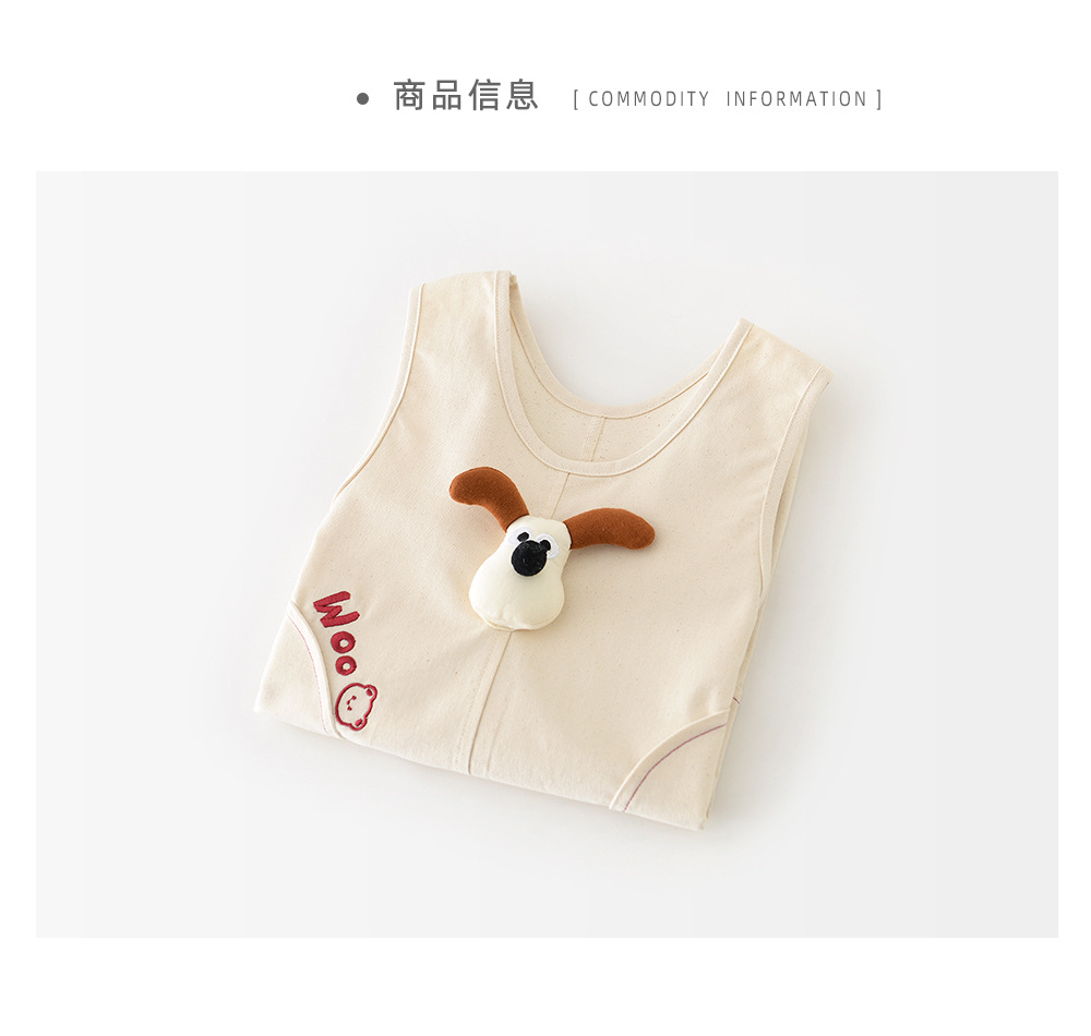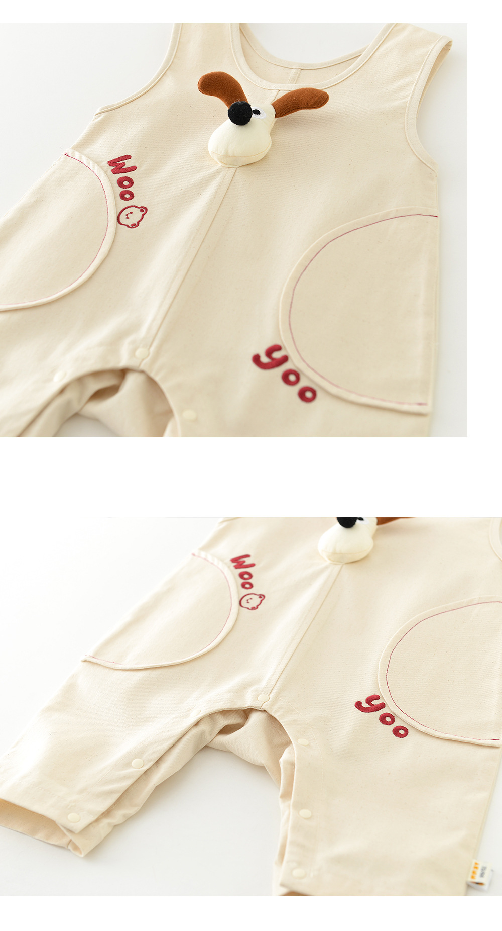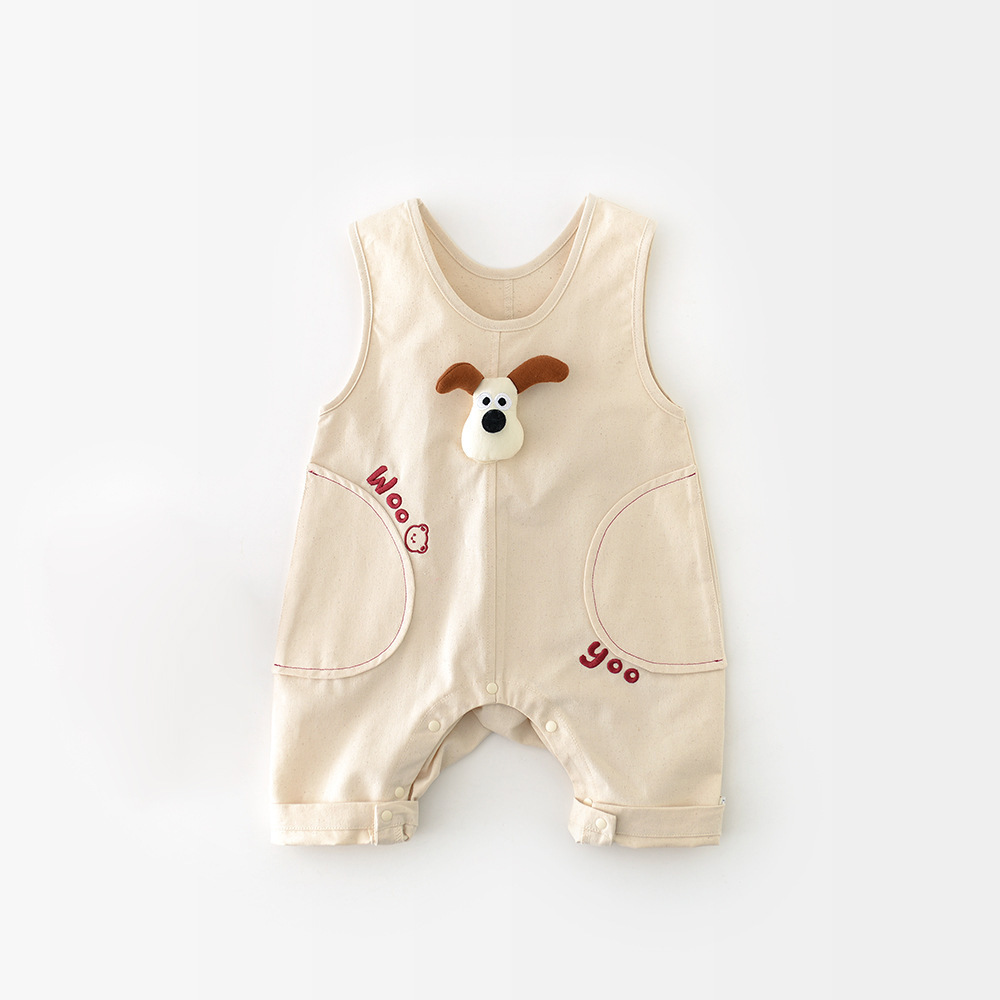 2025 봄 한국어 버전 아기 만화 수 놓은 작업복 소년과 소녀 강아지 인형 큰 주머니 바지 51039