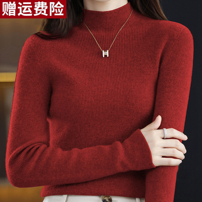 Bottoming 셔츠 양모 스웨터 여성의 가을과 겨울 양모 반 터틀넥 내부 스웨터 슬림 핏