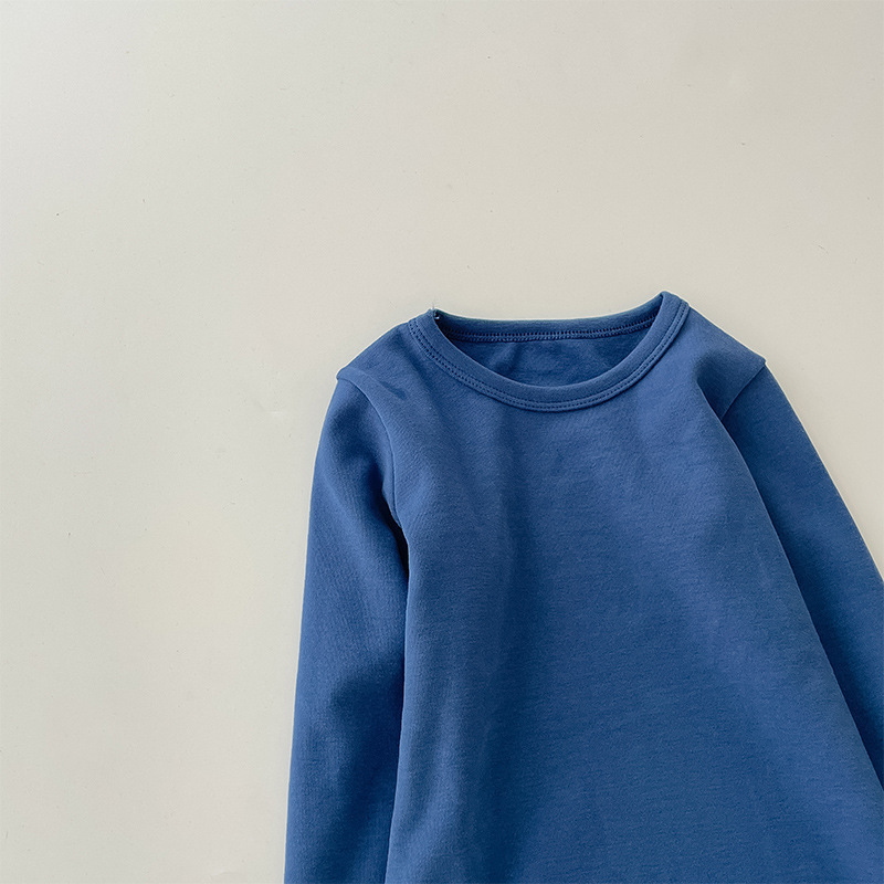 어린이 겨울 따뜻한 티셔츠 소년 소녀 크루 넥 벨벳 두꺼운 긴 소매 가을 니트 베이스 셔츠 탑스토어 가기