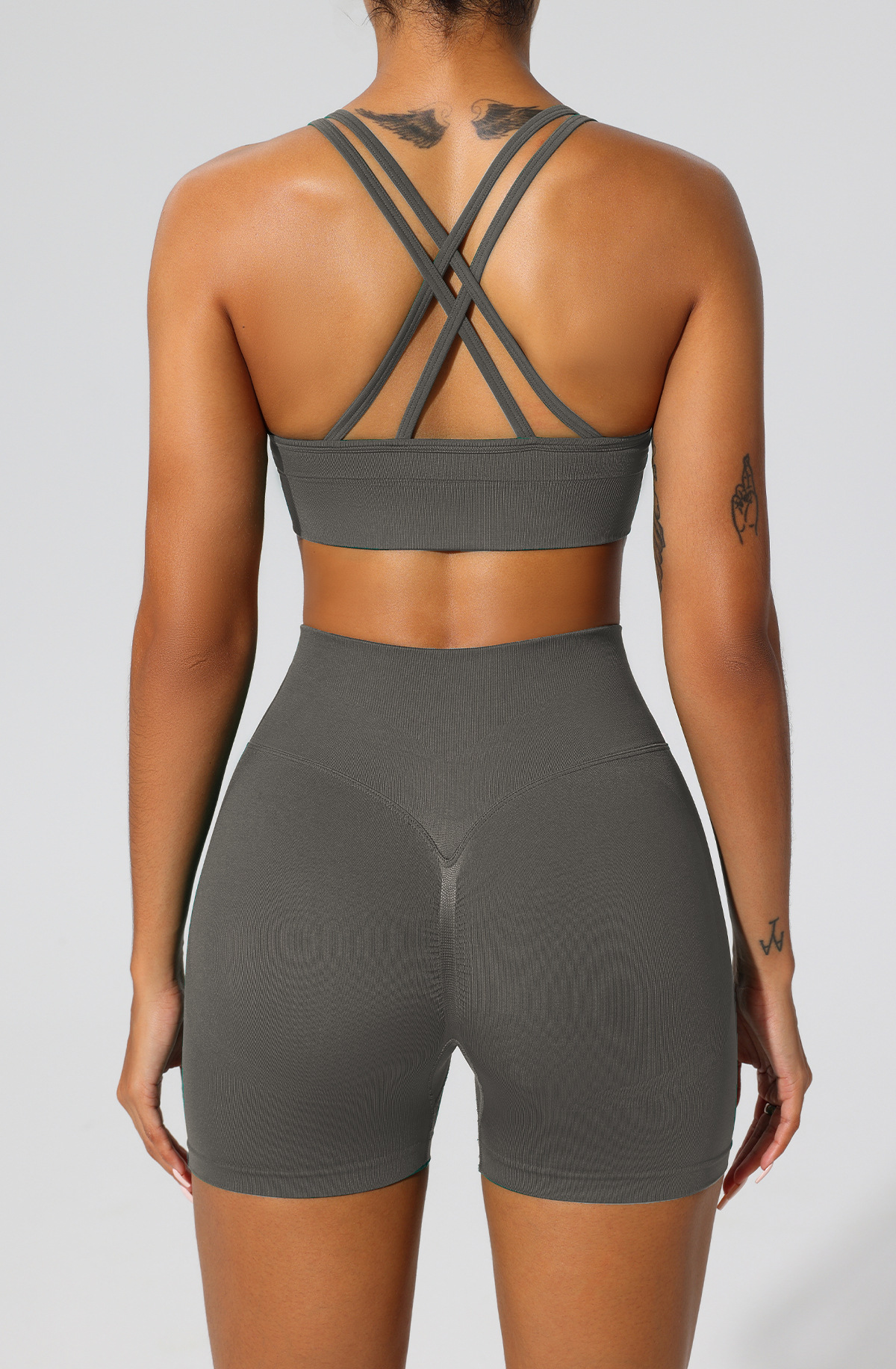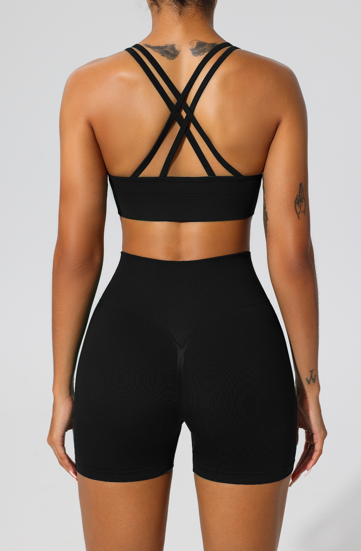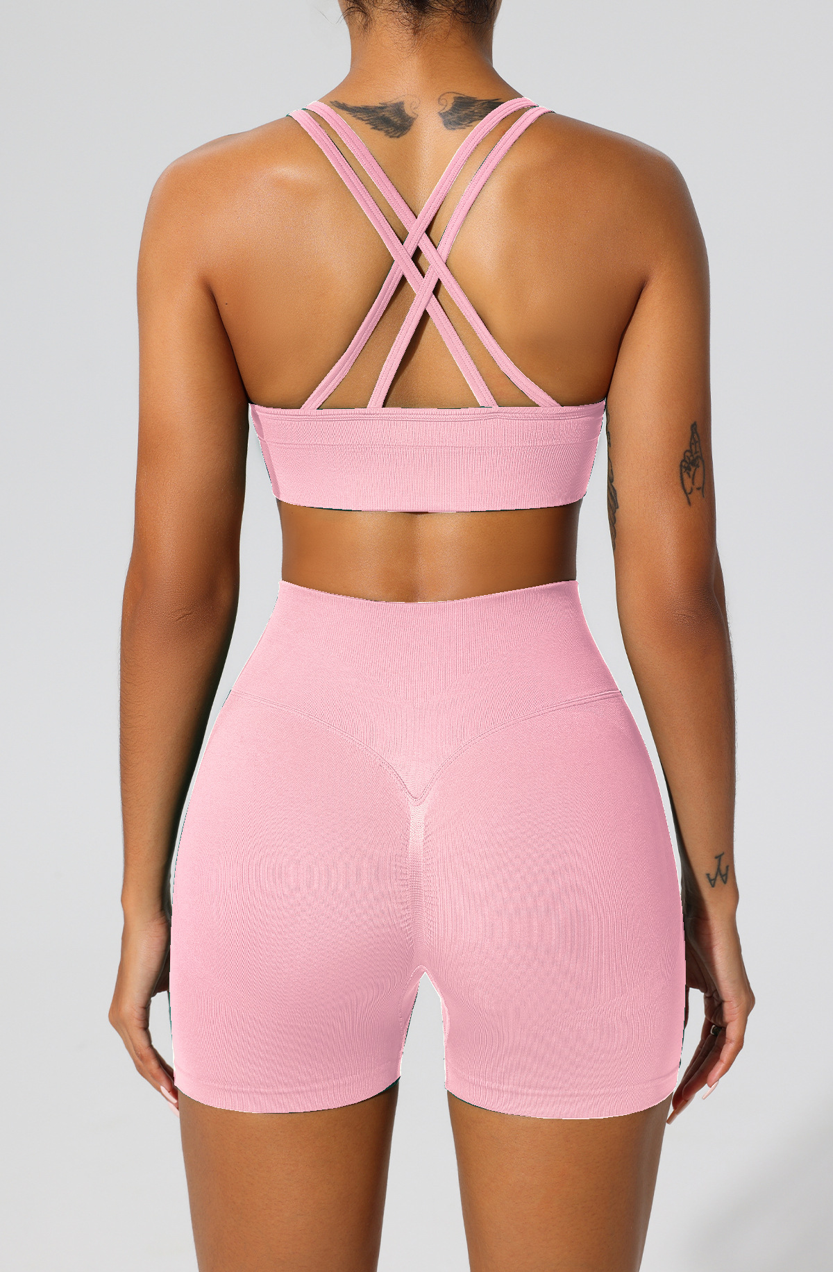 폭발성 높은 허리 엉덩이 리프팅 피트니스 바지 크로스 뷰티 백 브라 높은 탄성 스포츠 반바지 원활한 타이트 요가 의류 세트