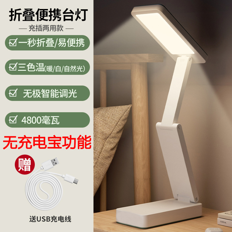 작은 테이블 램프 학습 및 학생 기숙사 접이식 휴대용 대용량 긴 내구력을위한 충전식 눈 보호 램프
