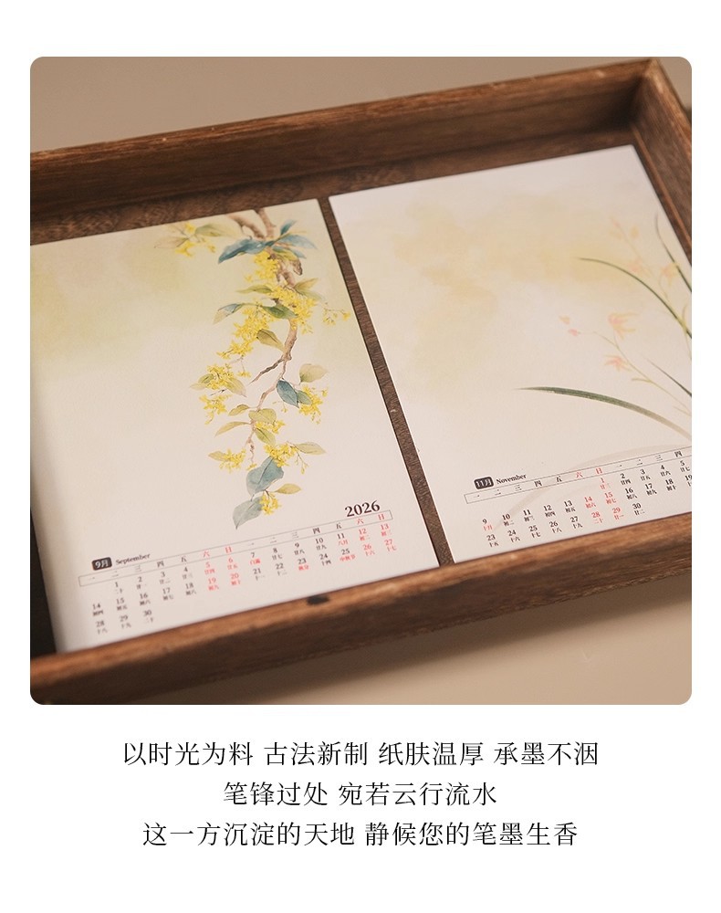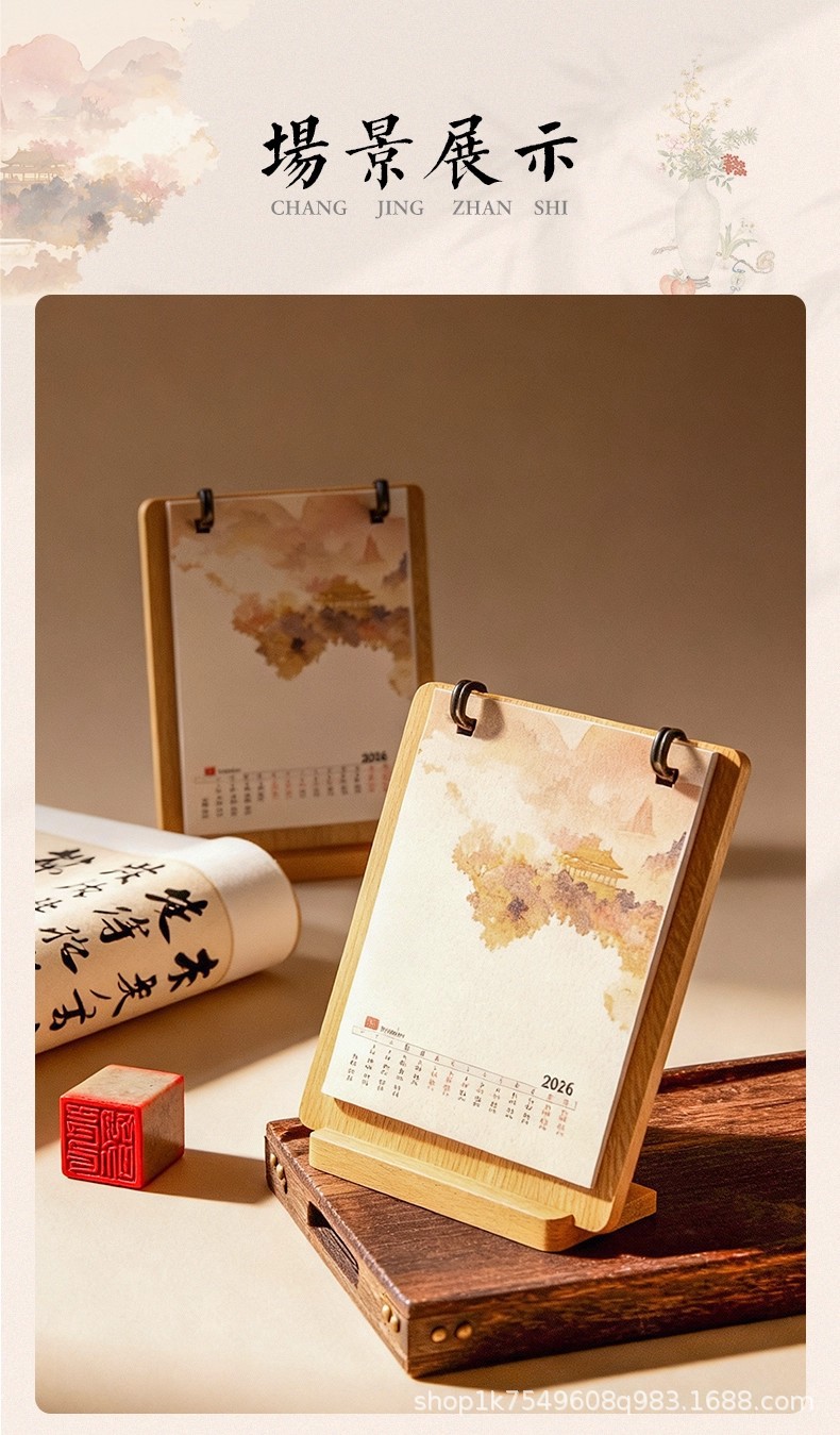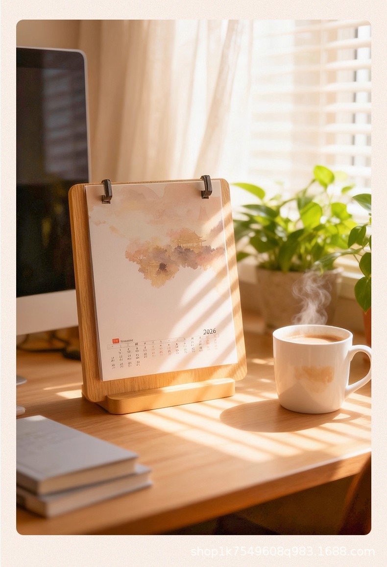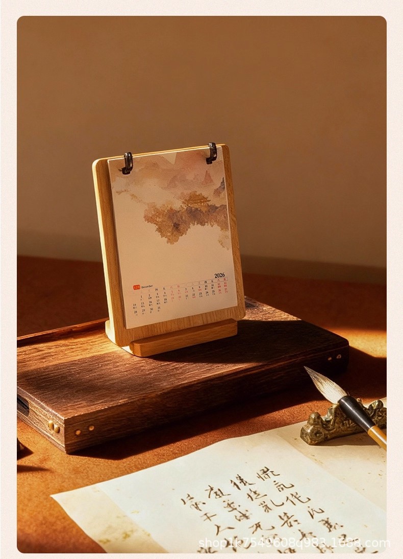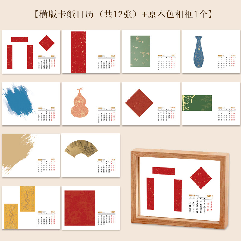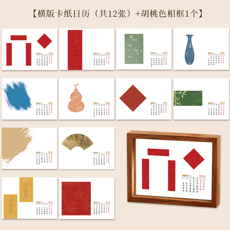 • 문화적이고 창의적인 탁상 달력 - 가로 버전 1팩 + 호두색 액자 1개