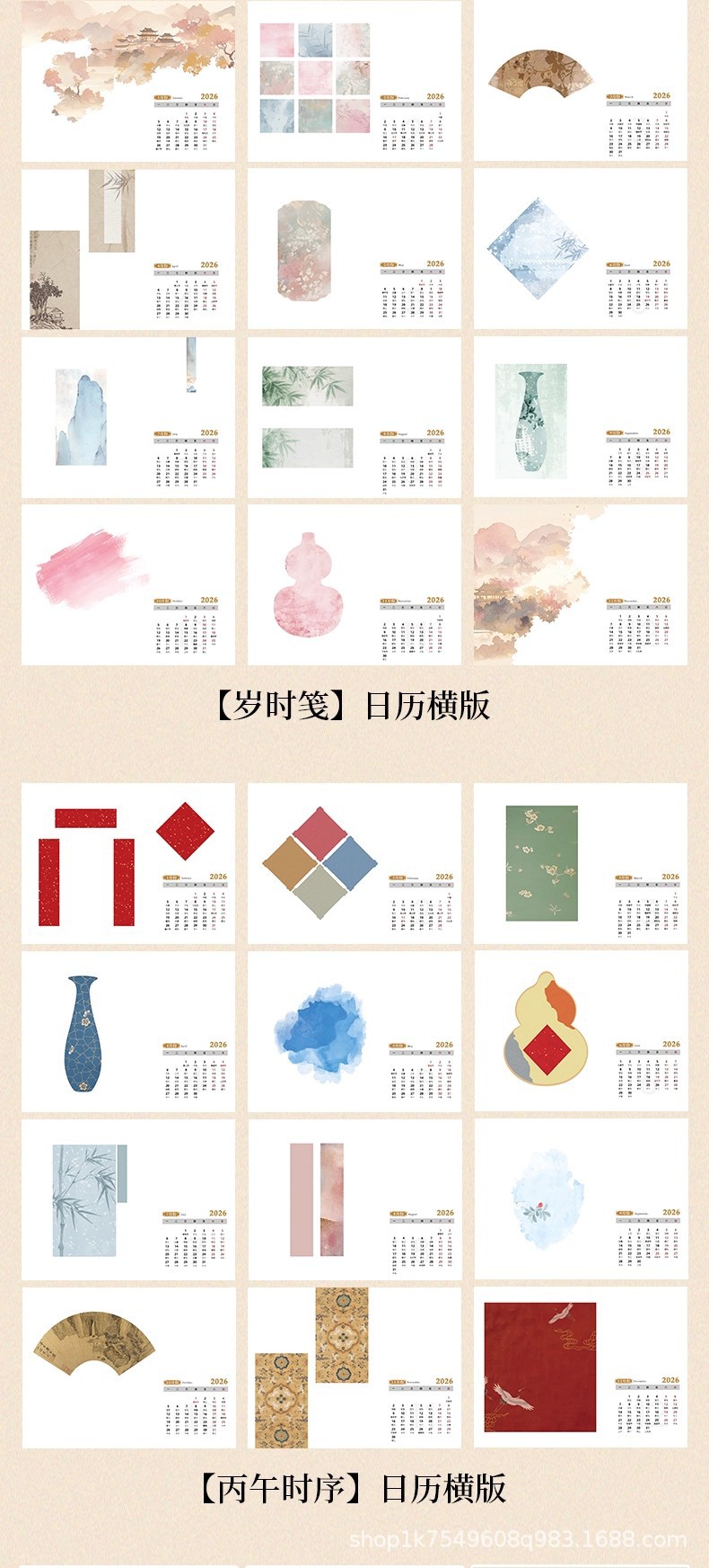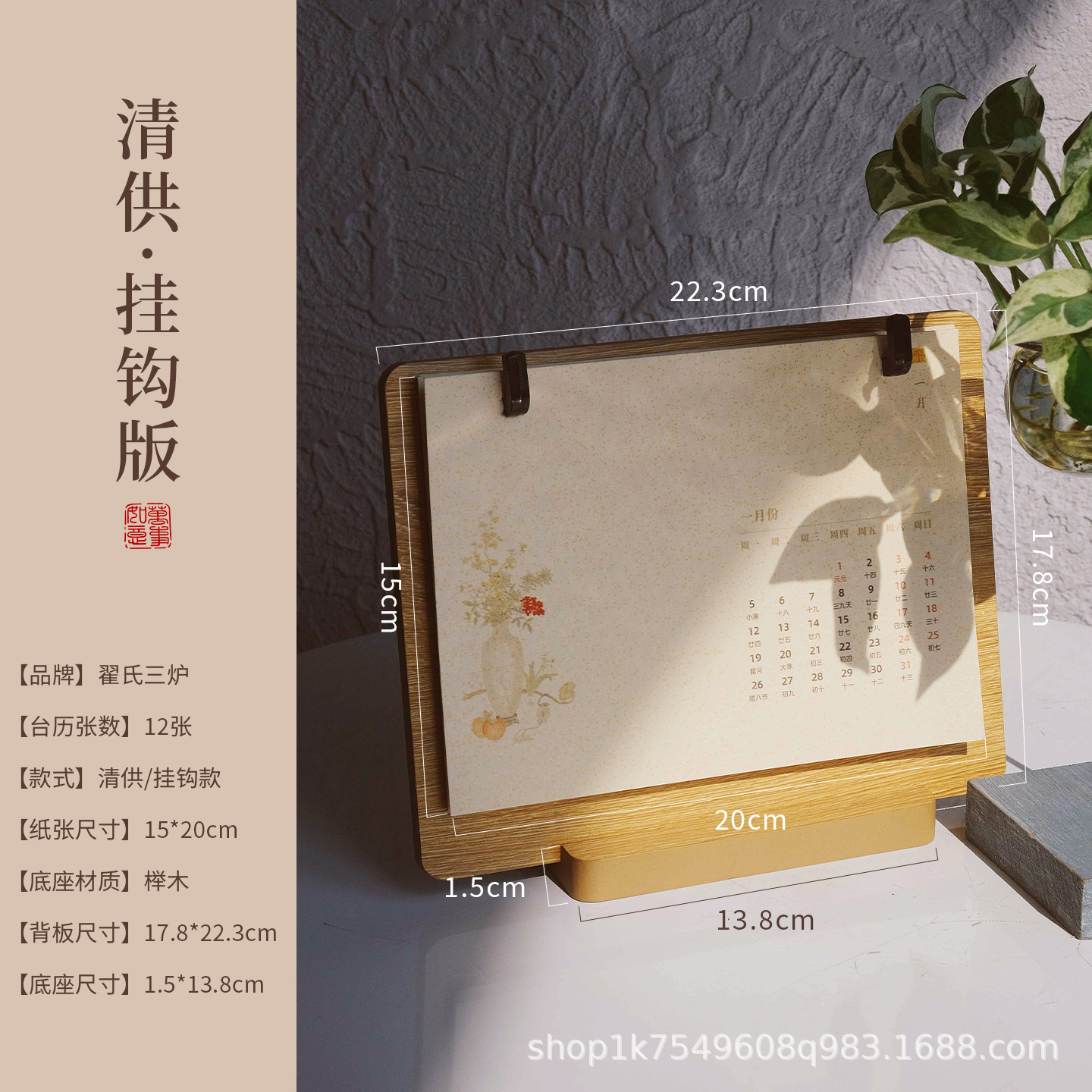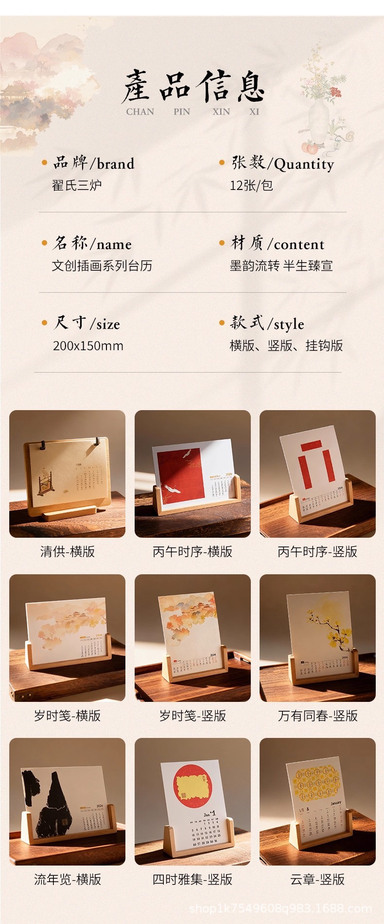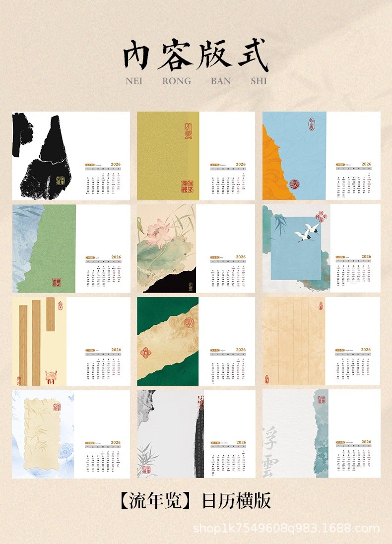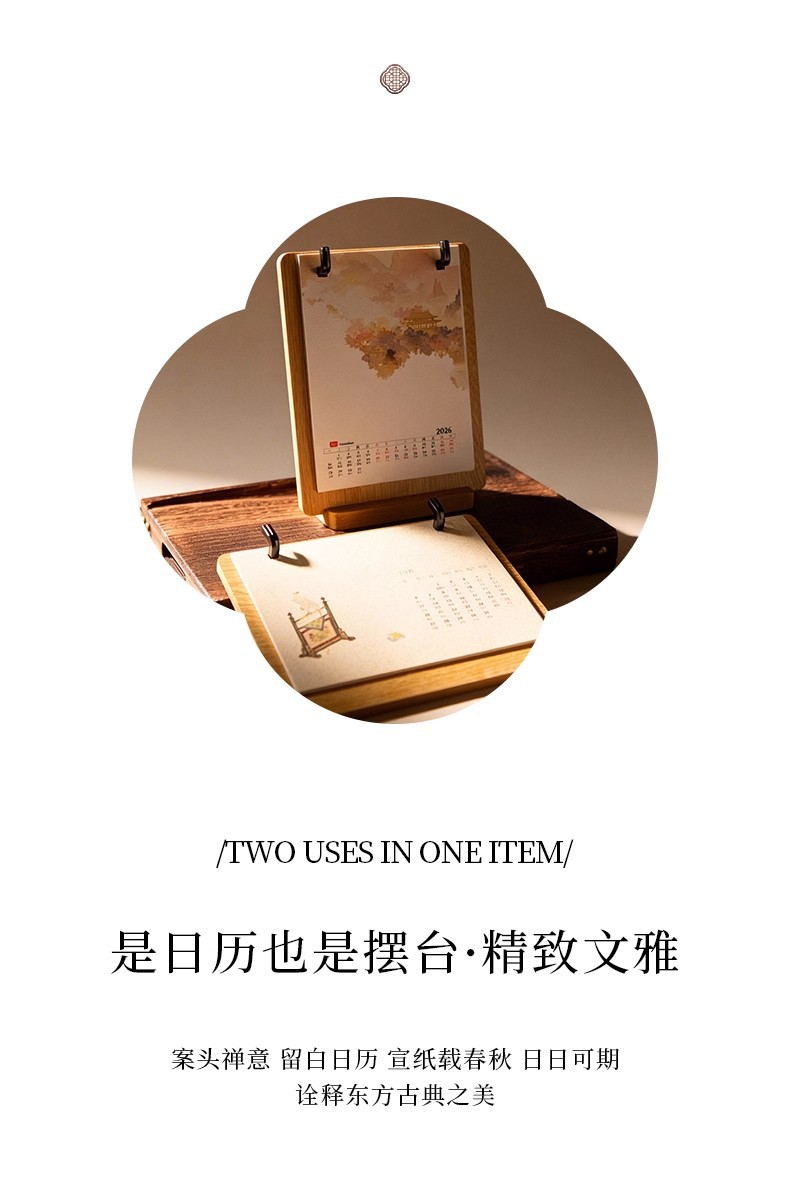 • 문화적이고 창의적인 탁상 달력 - 가로 버전 1팩 + 호두색 액자 1개