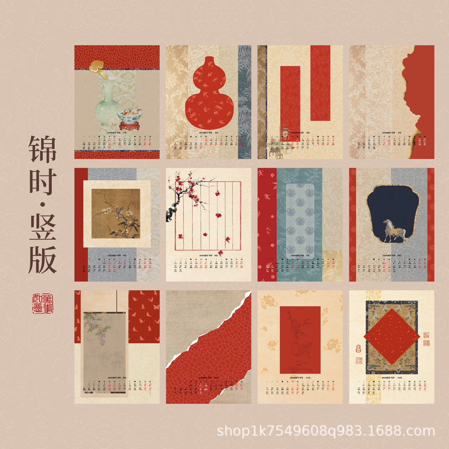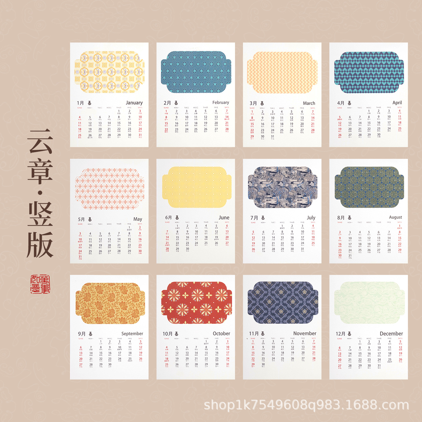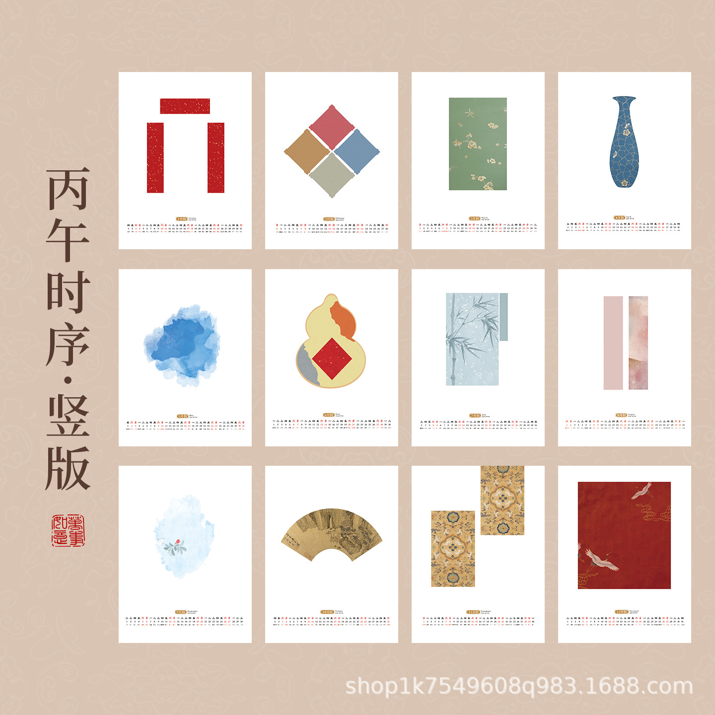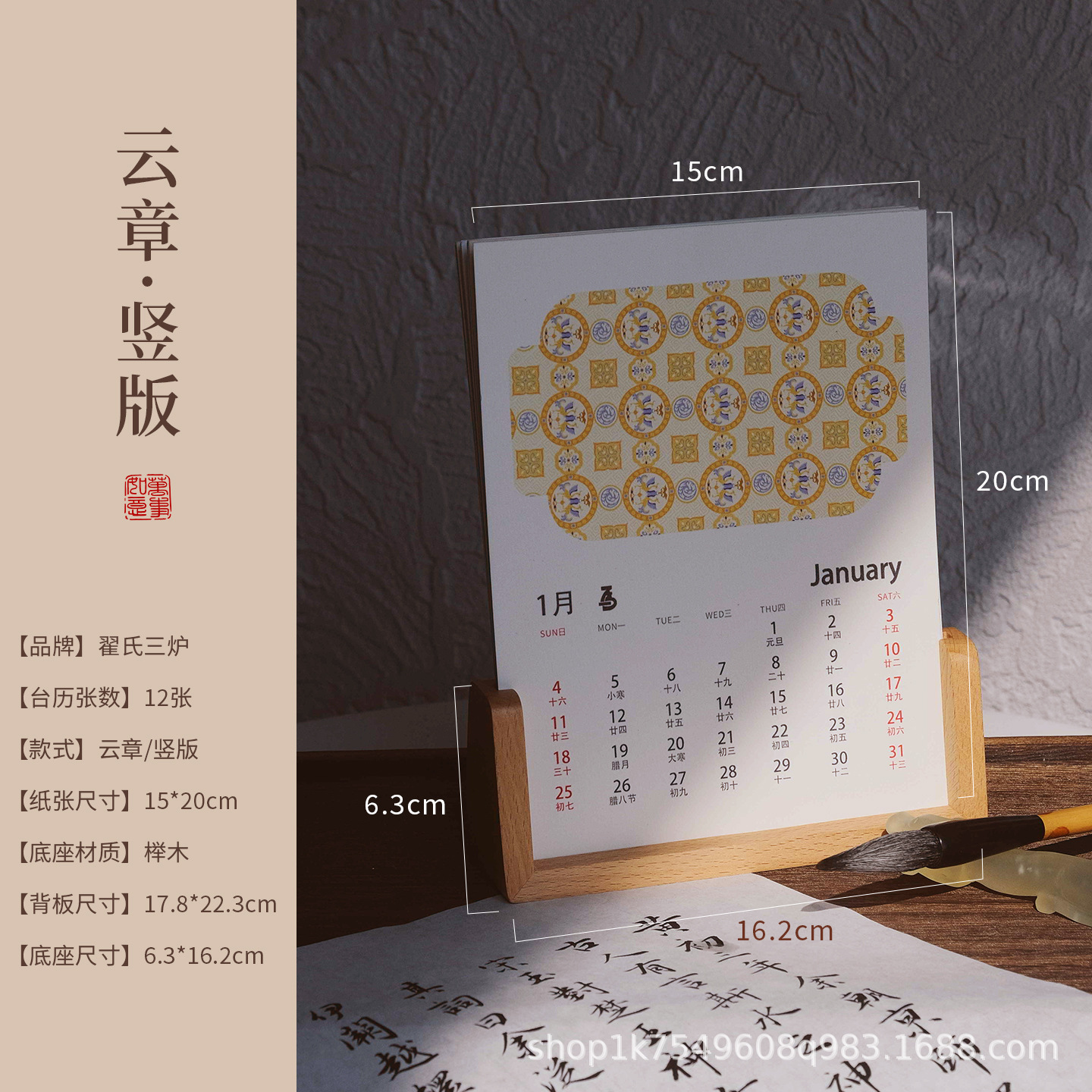 Batik Wen Chuang 대만 달력 세트 대만 달력 빈 손으로 쓴 판지 서예 전통 중국 회화 Yourself Xuan 종이의 서예 작품 작성스토어 가기