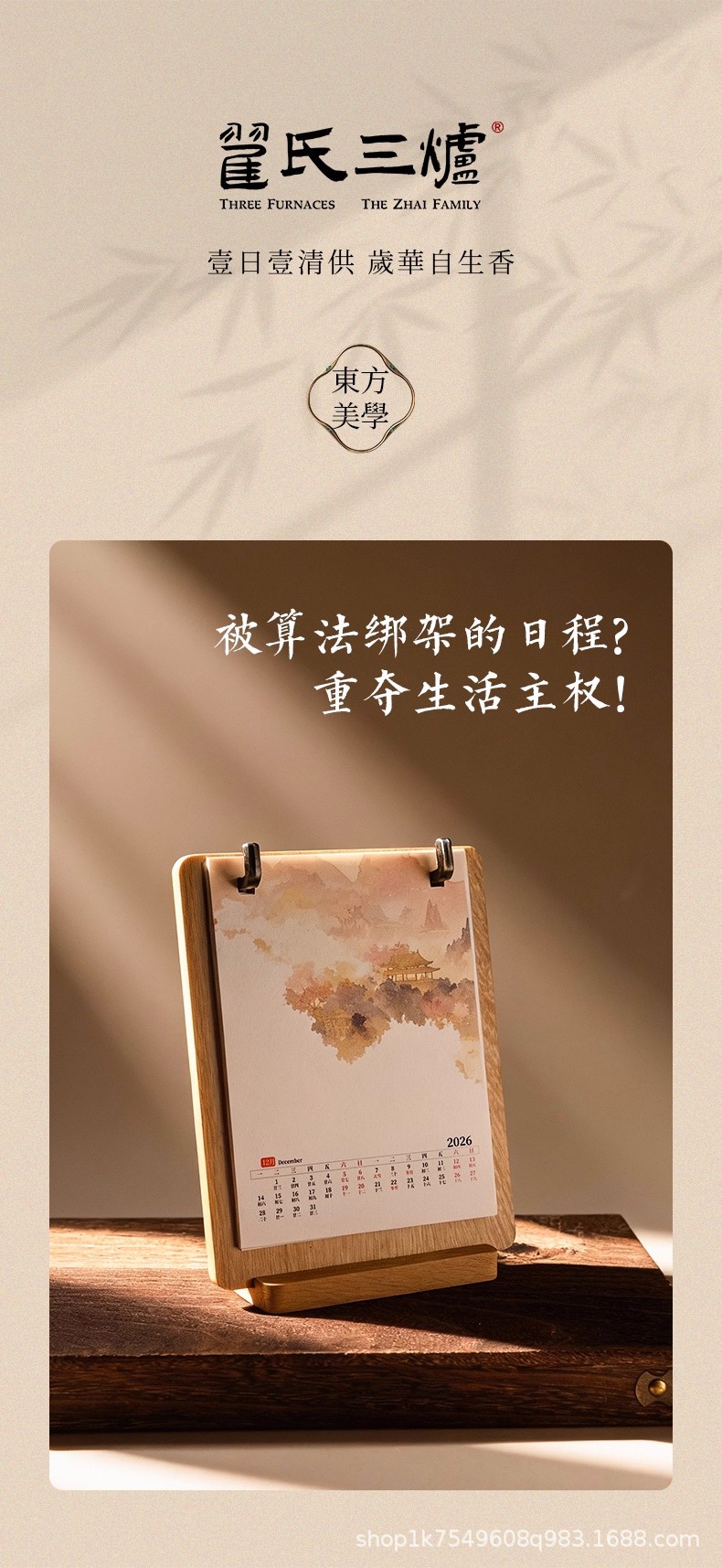 • 문화적이고 창의적인 탁상 달력 - 가로 버전 1팩 + 나무 색상 사진 프레임 1개