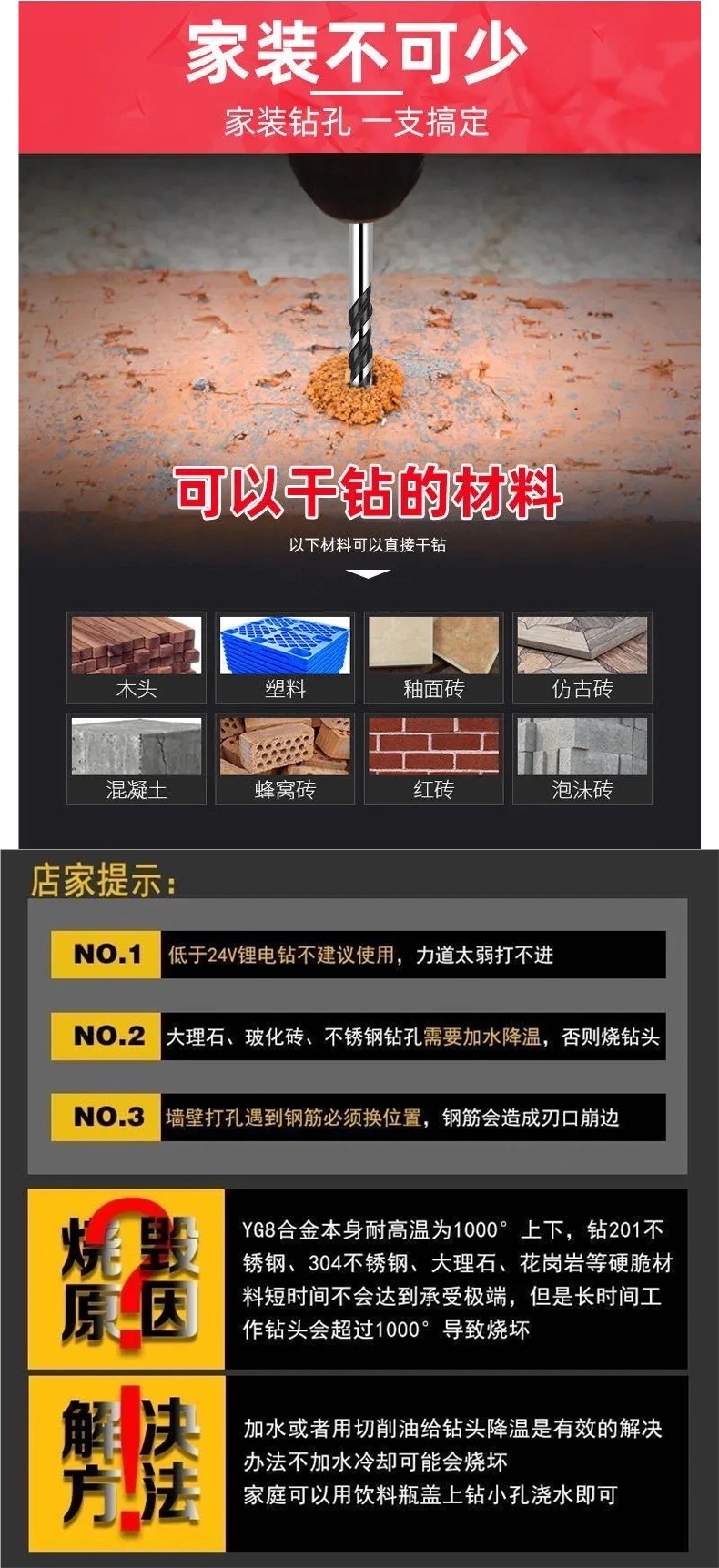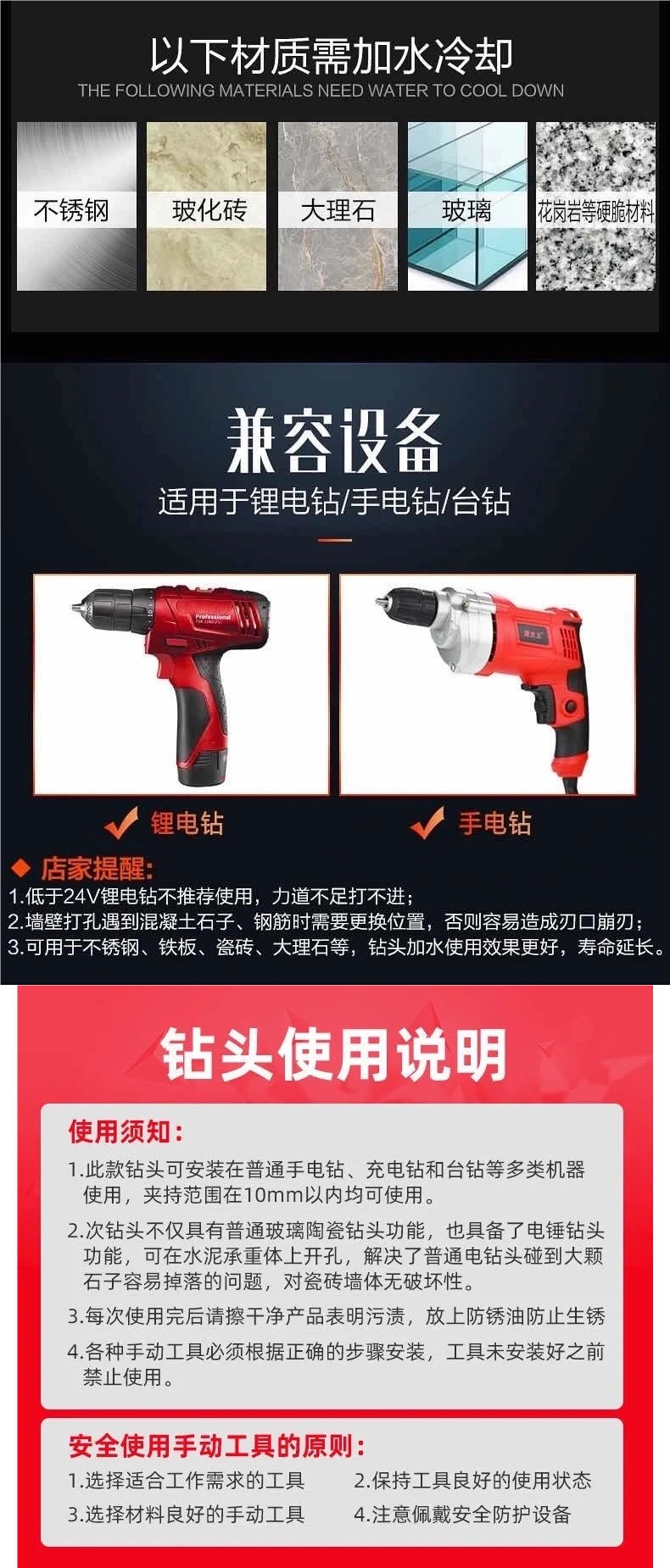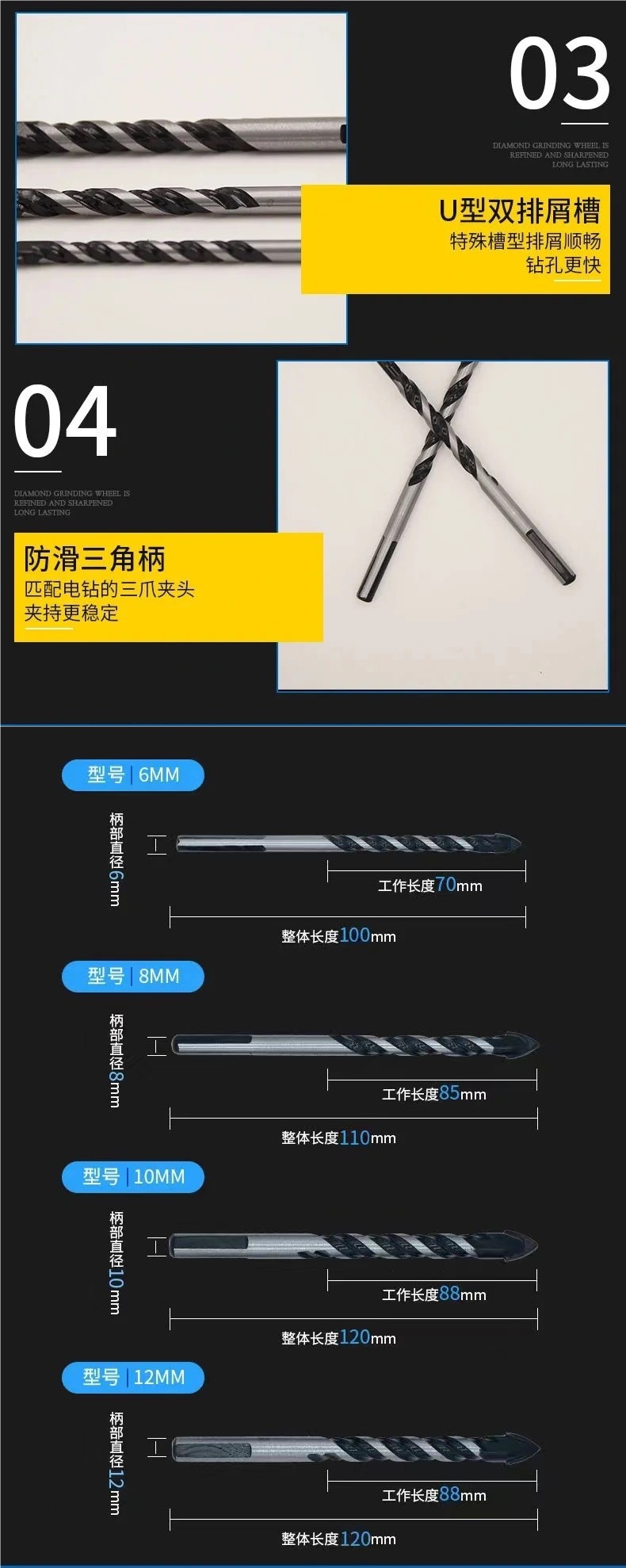 독일 드릴 콘크리트 드릴 벽 드릴 철 타일 유리 목공 핸드 드릴 터너 드릴링 삼각형 드릴