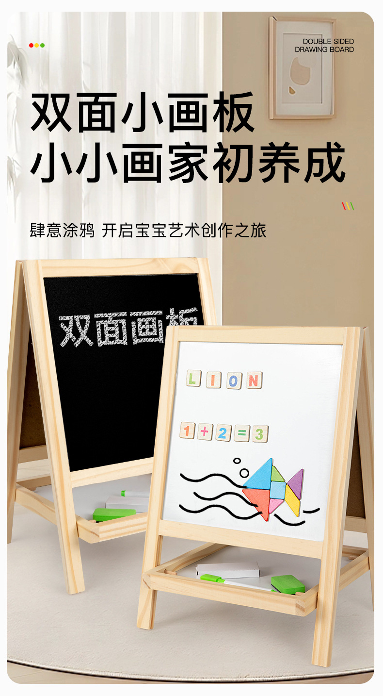 공장 도매 나무 어린이 양면 자기 드로잉 보드 쓰기 보드 2-6 세 조기 교육 어린이 마구간 장난감스토어 가기