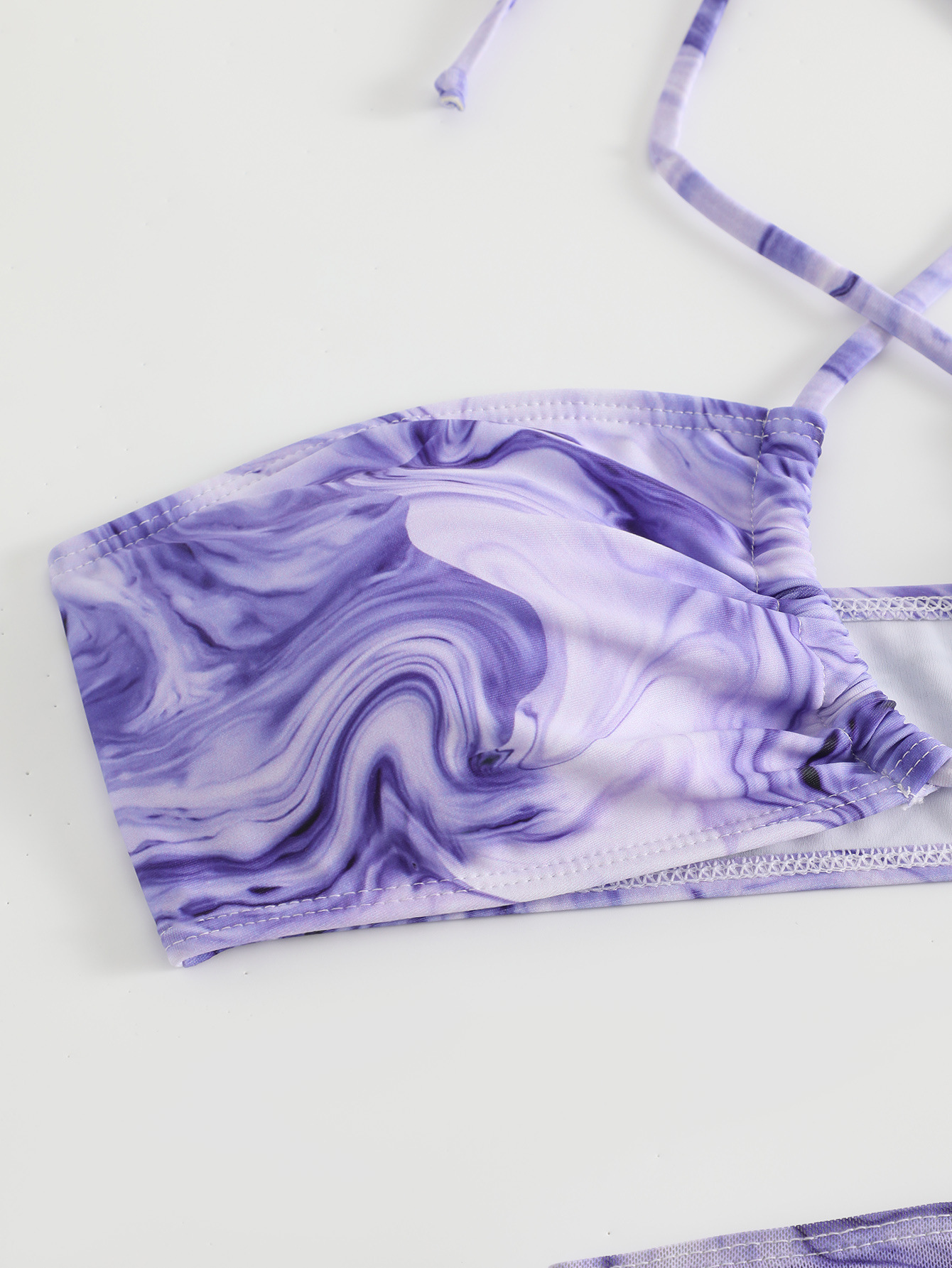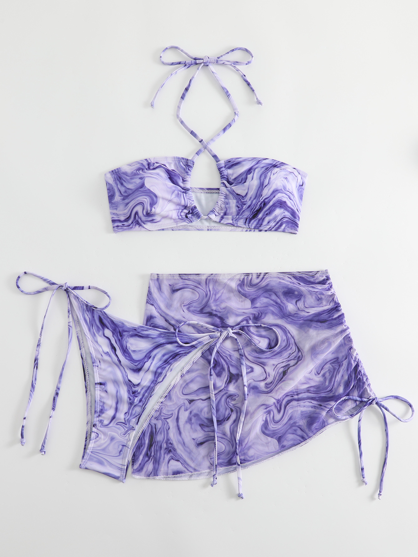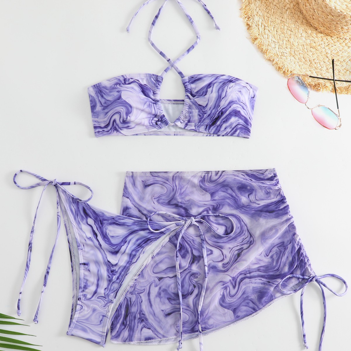 速卖通欧美跨境泳衣三件套性感辣妹挂脖抹胸比基尼分体泳装bikini