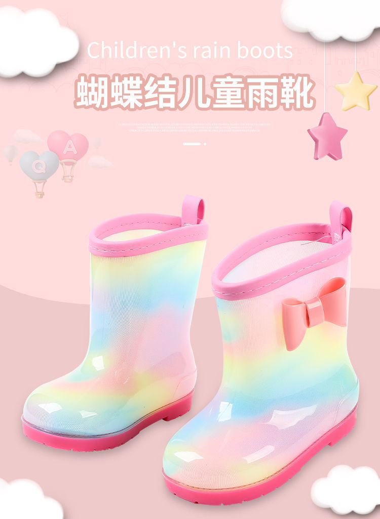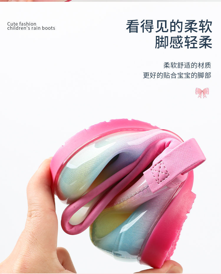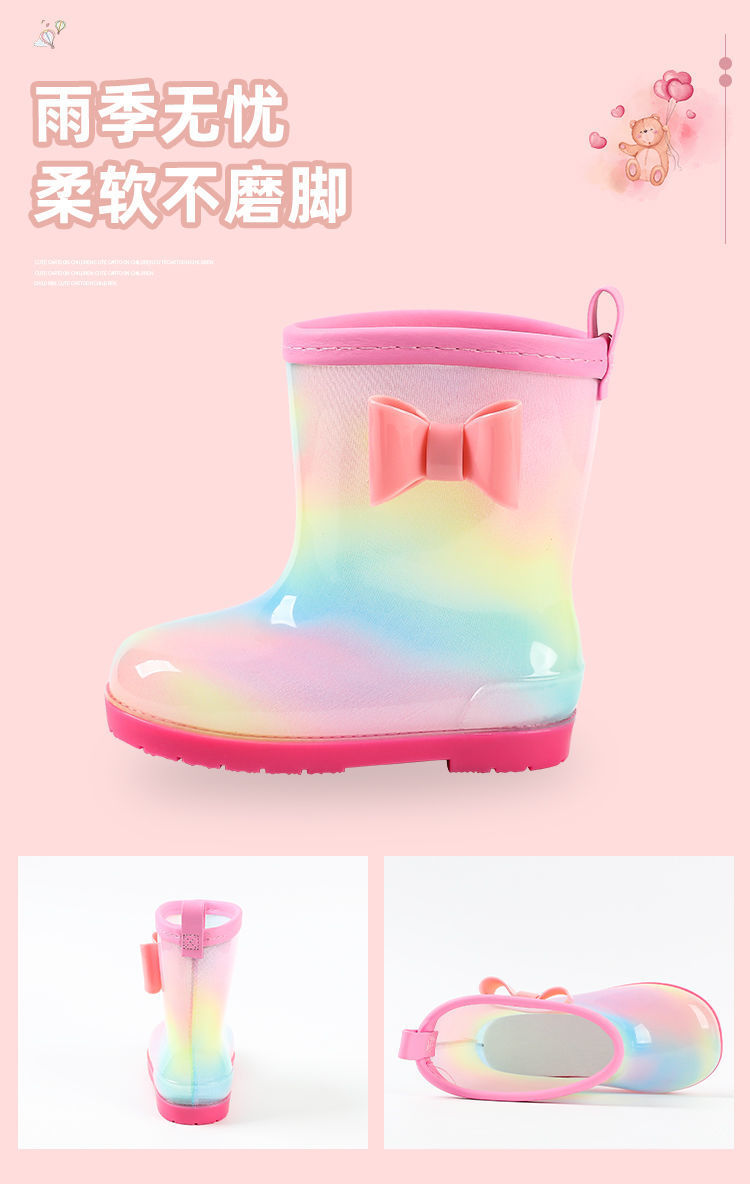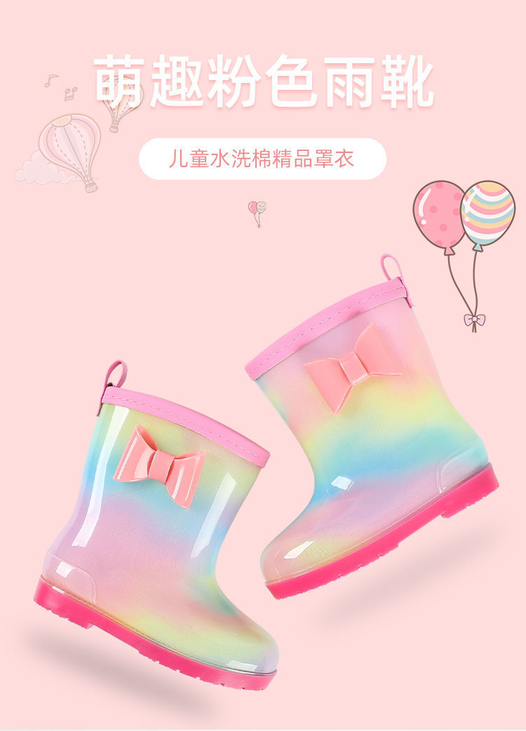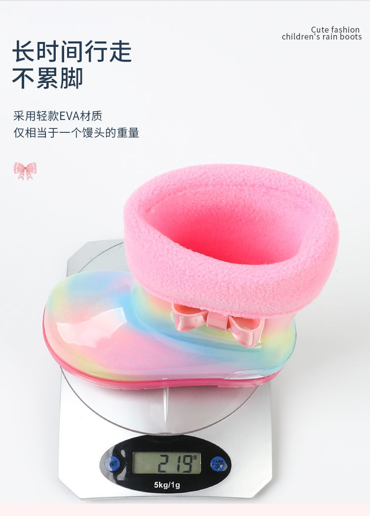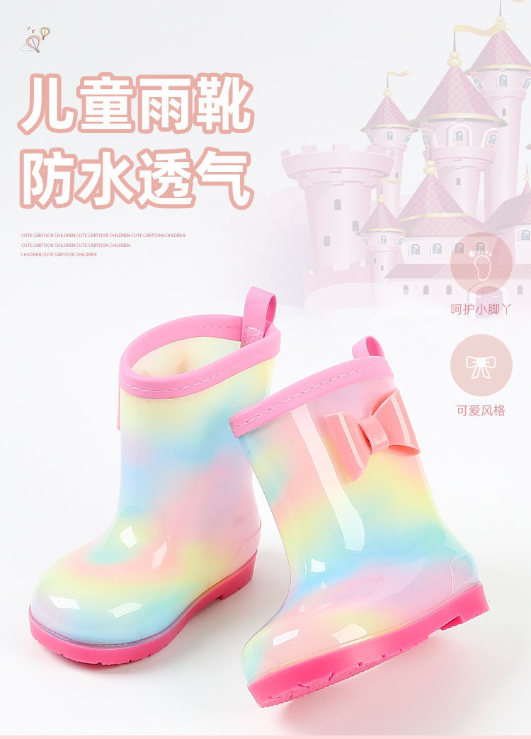 어린이 장화 공주 소녀 유치원 아기 미끄럼 방지 장화 워터 슈즈 플러스 벨벳 어린이 워터 부츠 귀여운 무지개