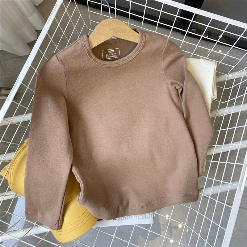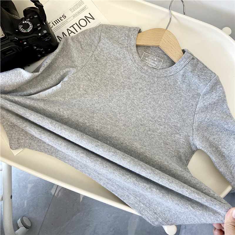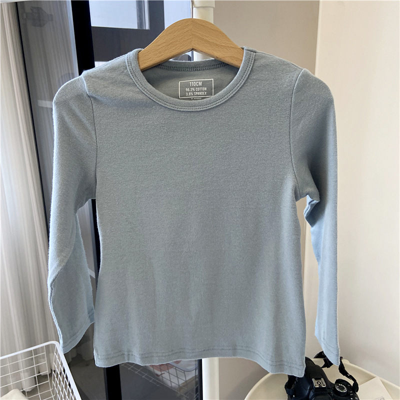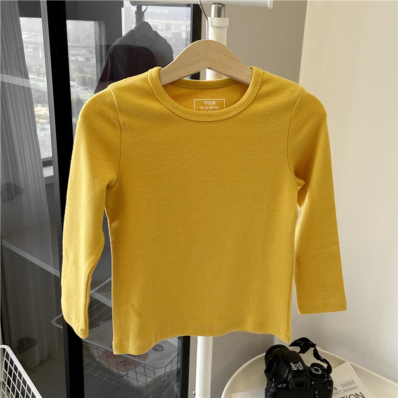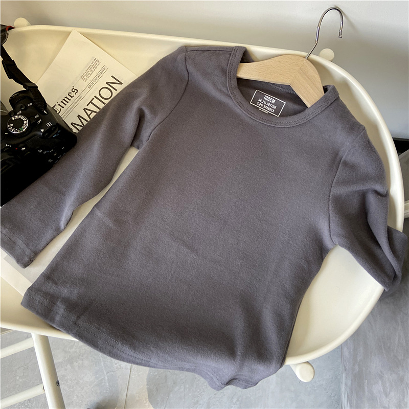 소년 소녀를위한 어린이 단색 기본 셔츠 검은 긴 소매 티셔츠 봄과 가을 아기 면 최고 유치원 공연 3스토어 가기