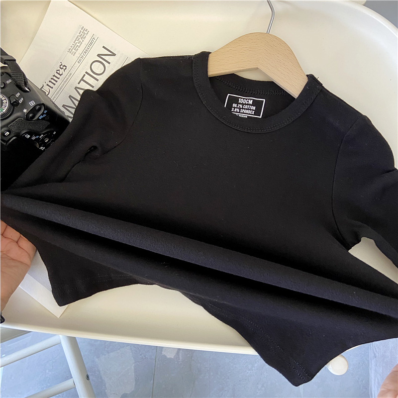 소년 소녀를위한 어린이 단색 기본 셔츠 검은 긴 소매 티셔츠 봄과 가을 아기 면 최고 유치원 공연 3