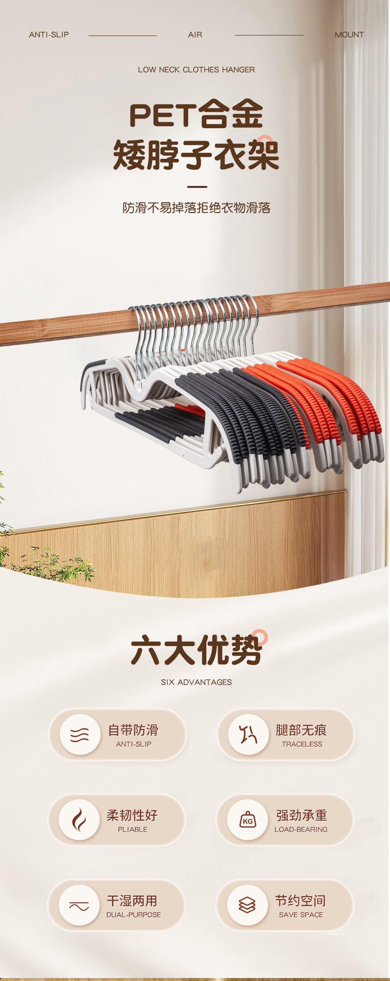 짧은 목 옷 옷걸이 가정용 옷 미끄럼 방지 원활한 낮은 목 좁은 옷 교수형 어깨 방지 코너 공간 절약형 옷 교수형 지원