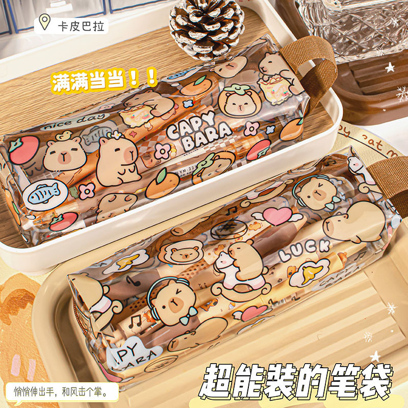 국경 간 좋은 판매 Kapibala 투명 팔각형 연필 가방 학생 문구 보관 가방 연필 문구 상자 학생