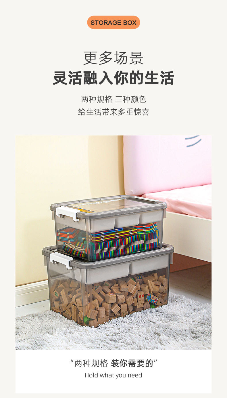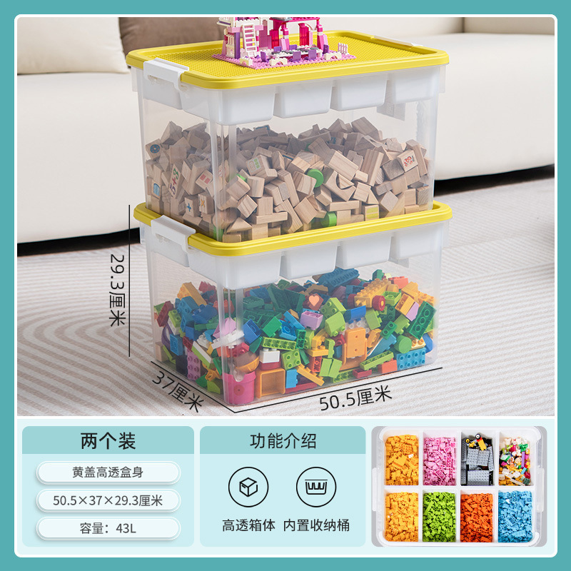 • 【43L】노란색 뚜껑이 있는 투명 상자, 2개 세트 [파티션 포함]