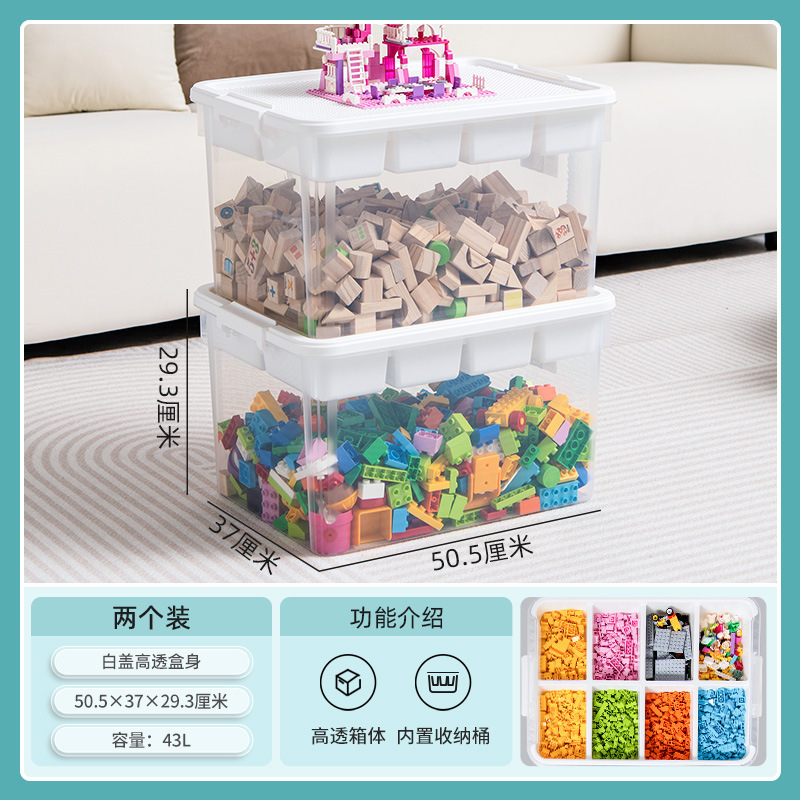 • [43L] 흰색 뚜껑이 있는 투명 상자, 2개 세트 [파티션 포함]