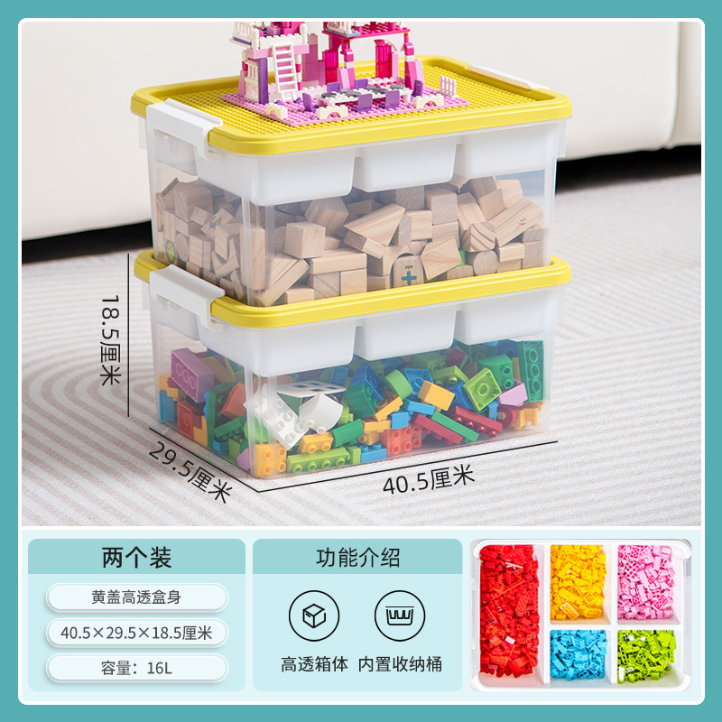 • [16L] 노란색 뚜껑이 있는 투명 상자, 2팩 [파티션 포함]