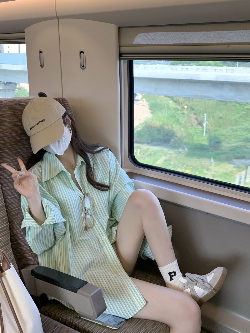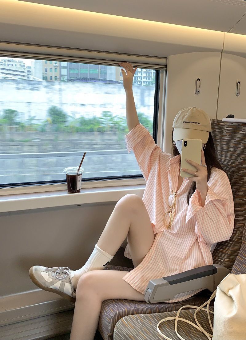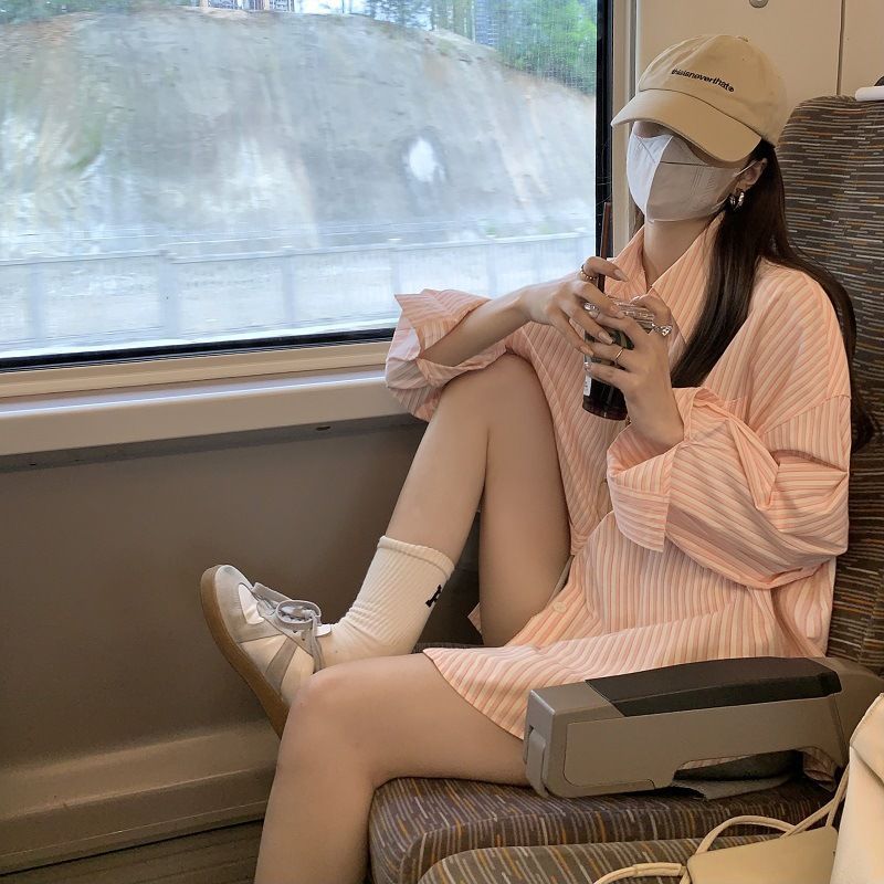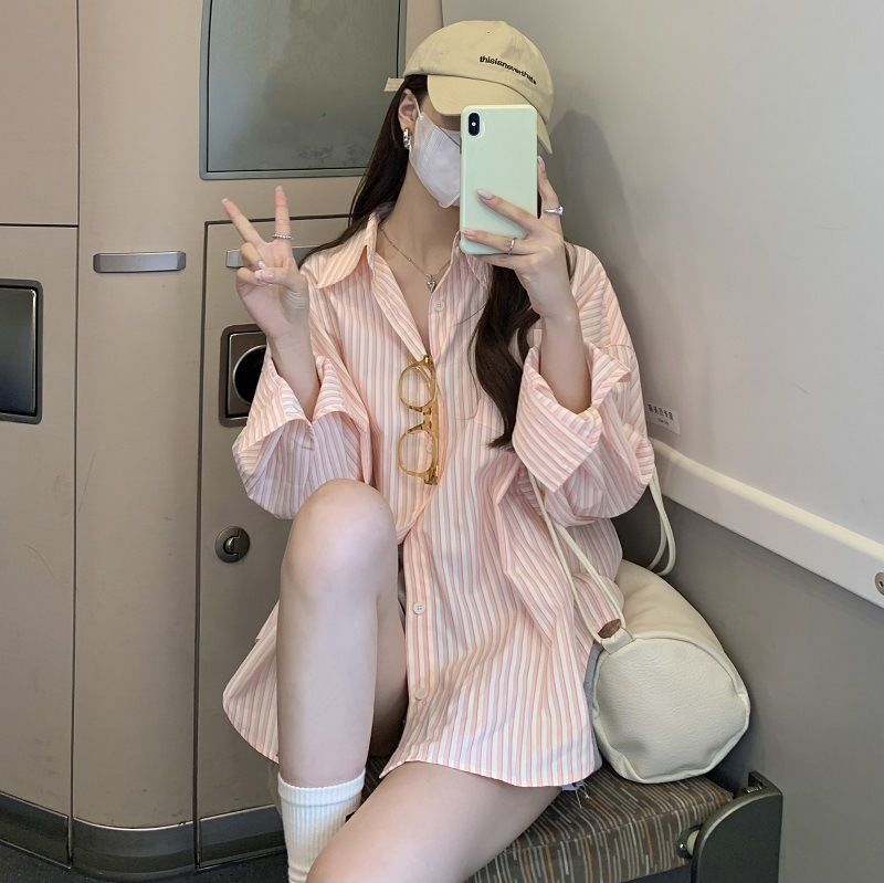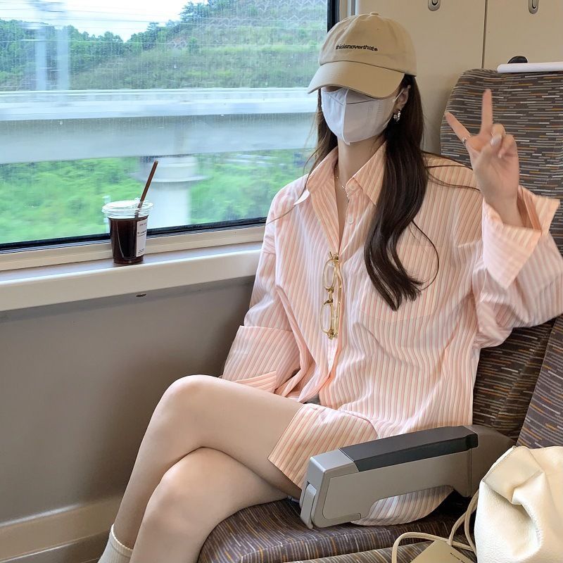 핑크 프랑스 틈새 디자인 센스 스트라이프 셔츠 여성용 긴팔 얇은 봄과 가을 패션 브랜드 셔츠 카디건 재킷스토어 가기