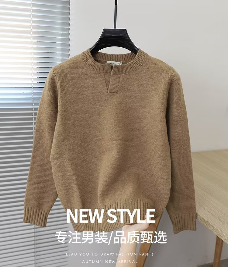 2024 남자를위한 봄과 가을 새 스웨터 그레이 트렌디 올 매치 디자인 센스 니쉬 느슨한 긴팔 캐주얼 아우터