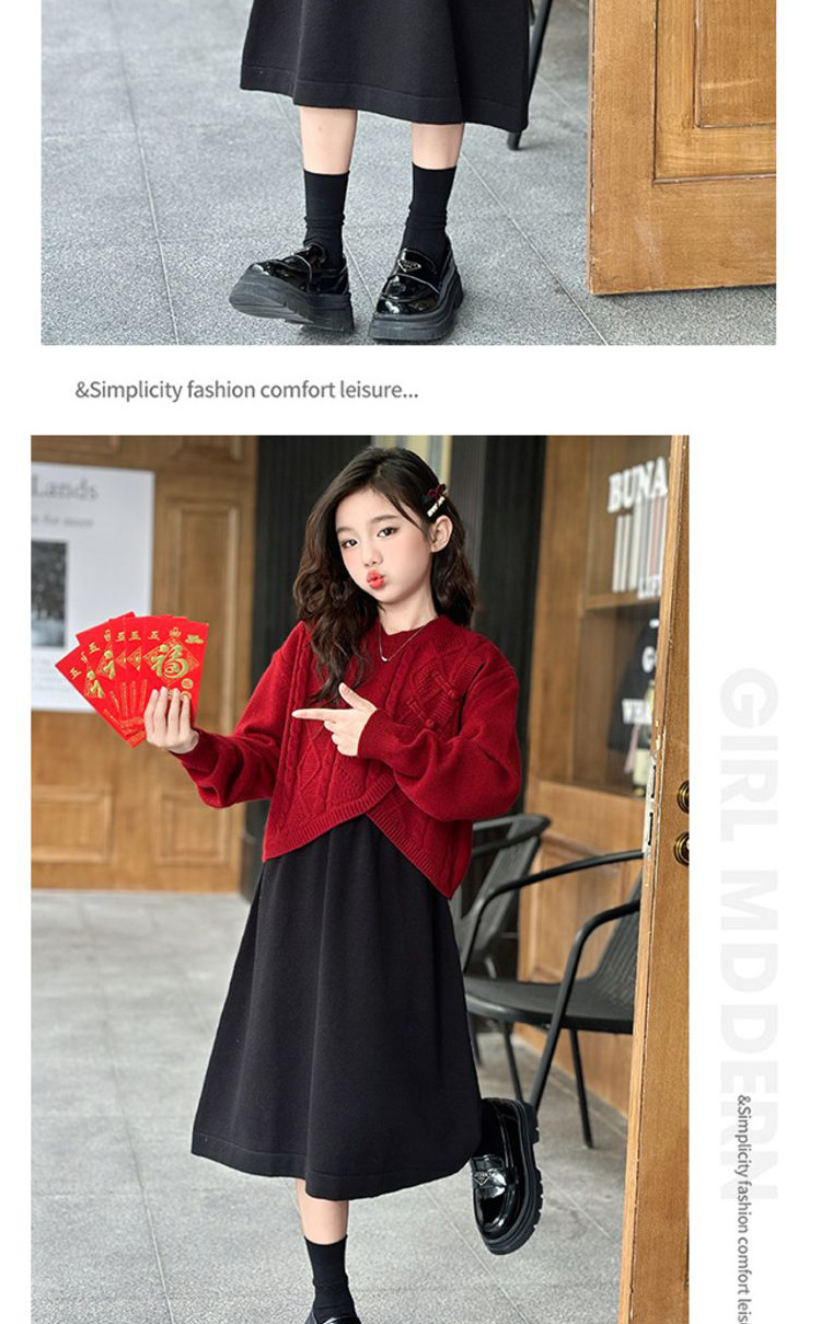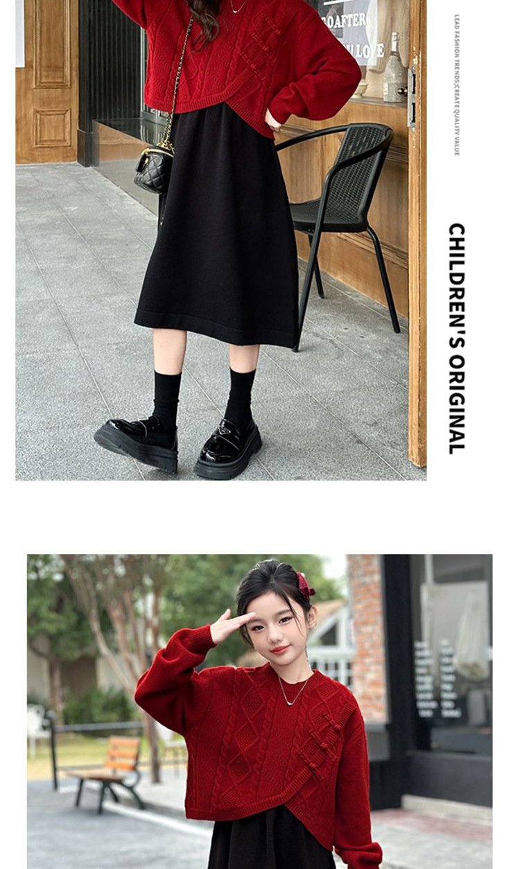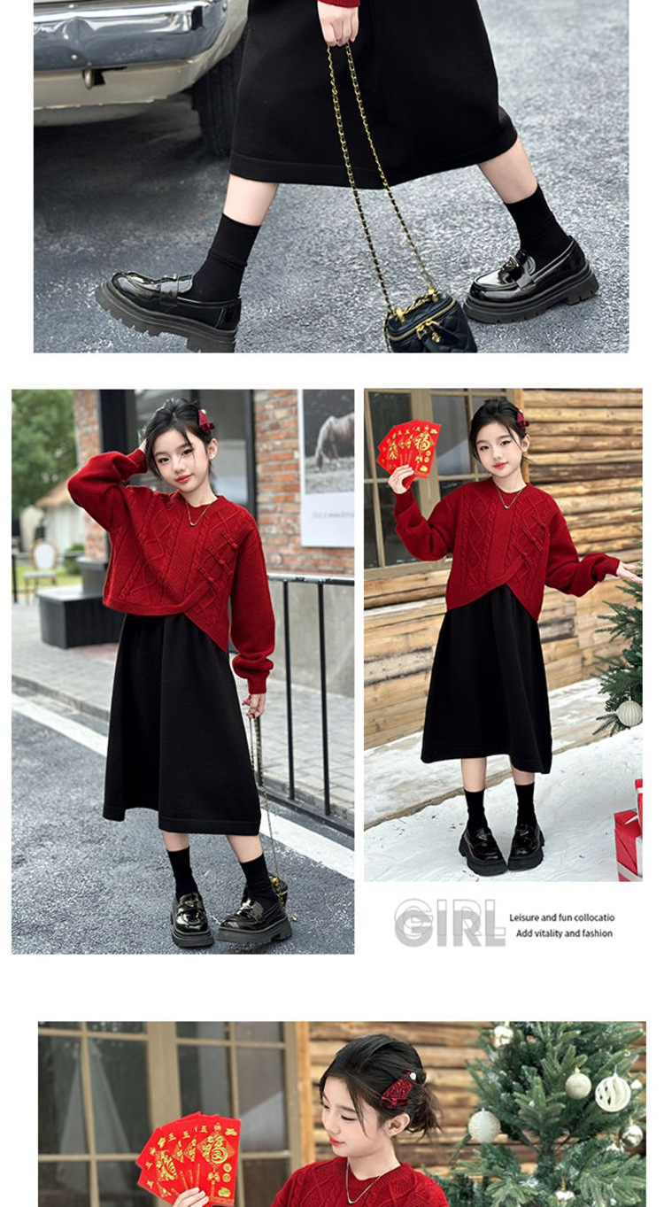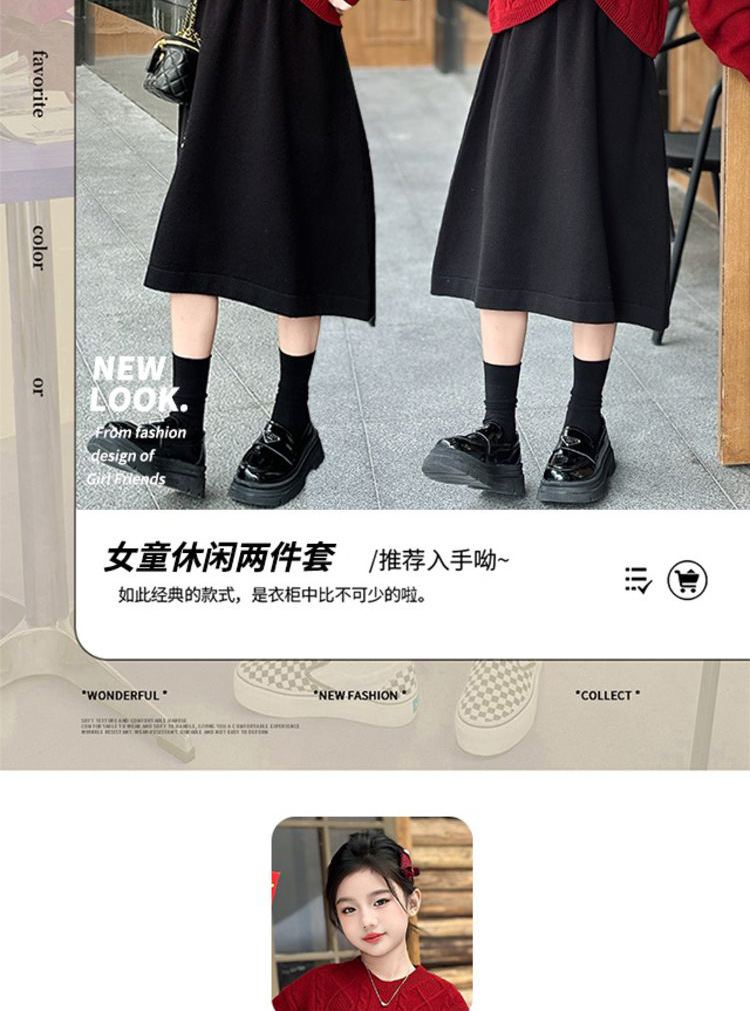 소녀들의 겨울 원피스 2025 세트 신소녀 중국 붉은 스웨터 베스퍼 원피스 2 피스 새해 원피스스토어 가기