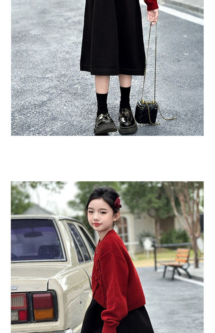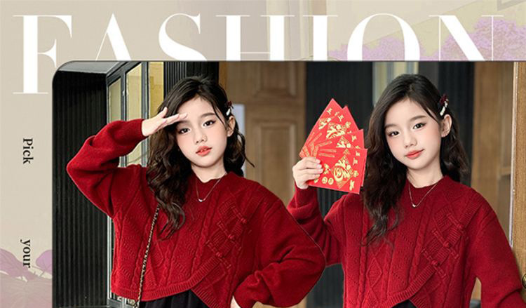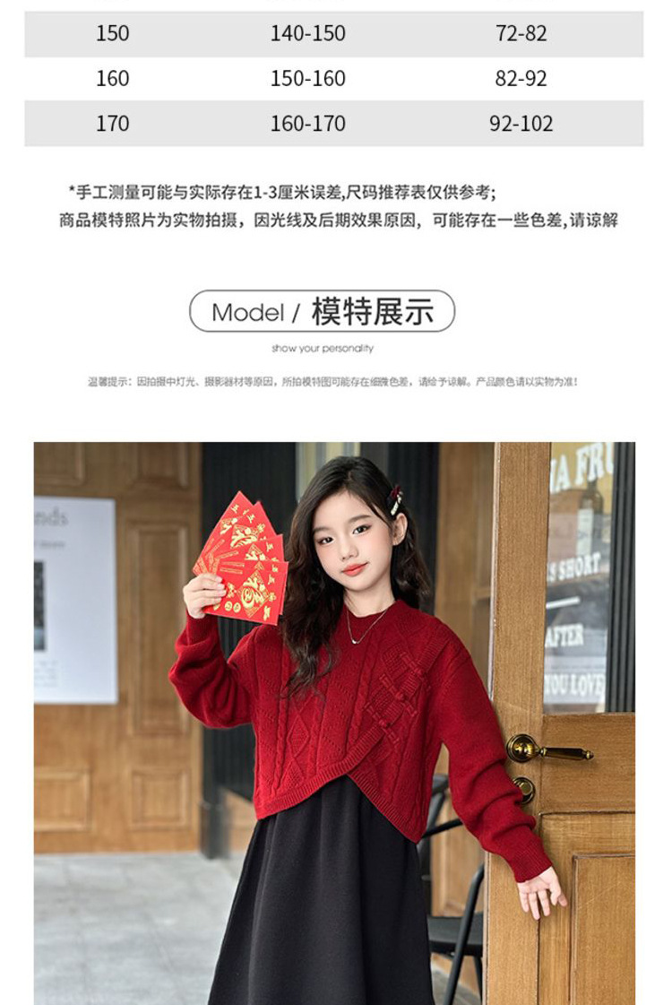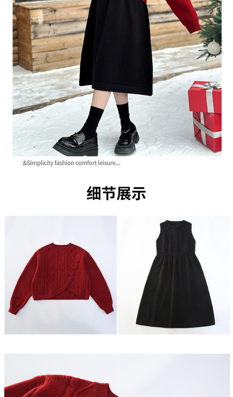 소녀들의 겨울 원피스 2025 세트 신소녀 중국 붉은 스웨터 베스퍼 원피스 2 피스 새해 원피스스토어 가기