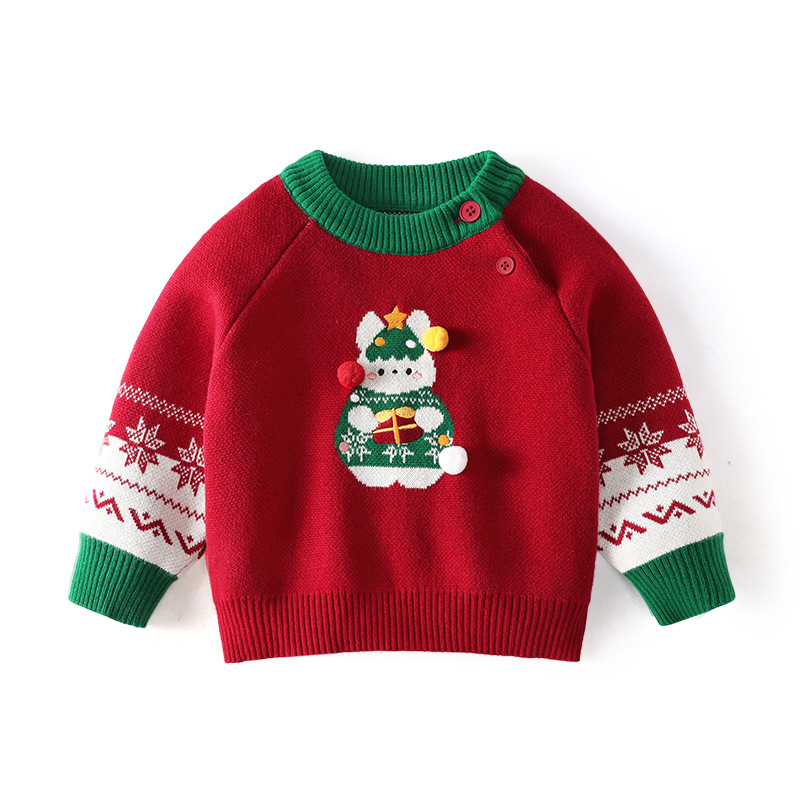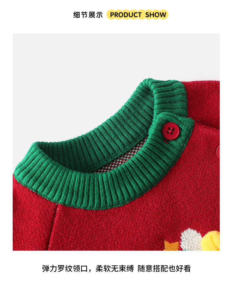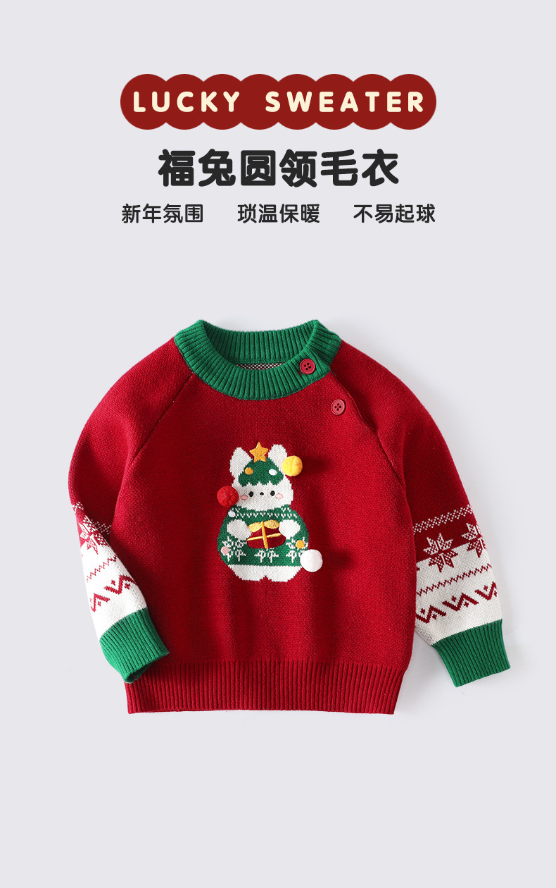 어린이 새해 복 레드 스웨터 겨울 올 매치 Futu Crewneck 니트 탑 코튼 년 착용 소녀 클래스 A 스웨터스토어 가기