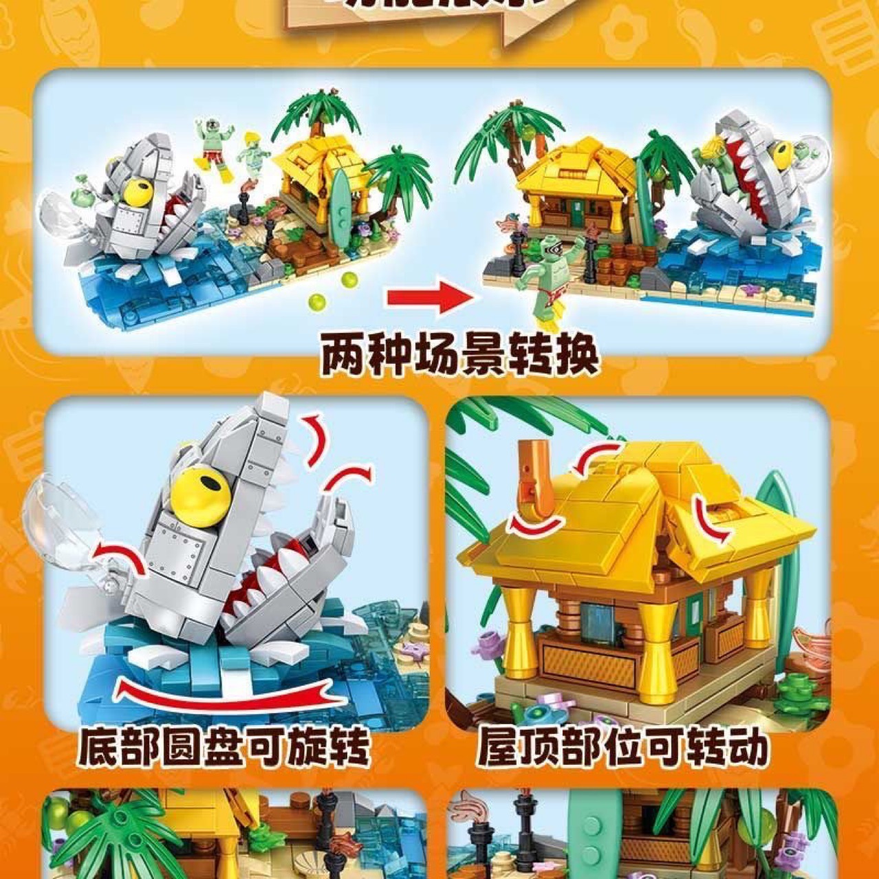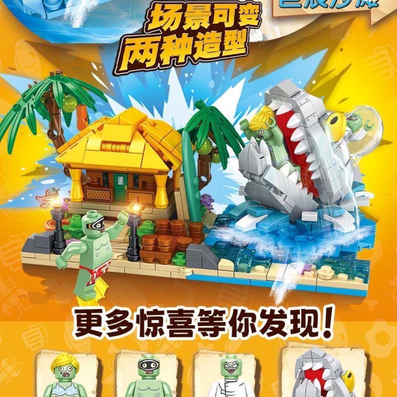 거대한 코끼리 JX90164 좀비 거대 파도 해변 어린이 교육용 소형 블록 조립 장난감 소년용 8조립