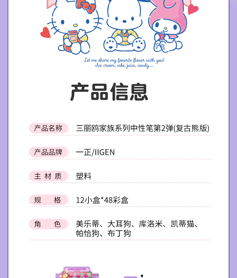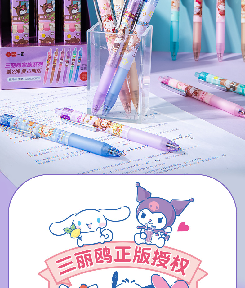 Iigen One 문구 산리오 이미지 젤 펜 2 차 폭탄 학생 0.5mm 총알 프레스 젤 펜