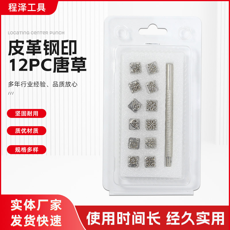 아연 합금 가죽 강철 인쇄-12pc 당나라 잔디 강철 인쇄 가죽 펀치 DIY 가죽 조각 도구