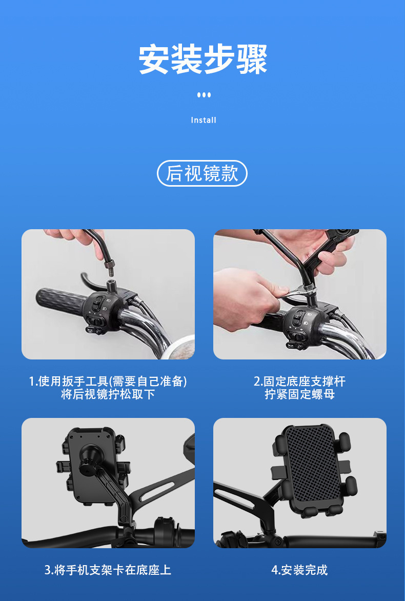 새로운 오토바이 휴대 전화 브래킷 자전거 전기 자동차 내비게이션 브래킷 라이딩 빠른 릴리스 원 버튼 잠금 브래킷