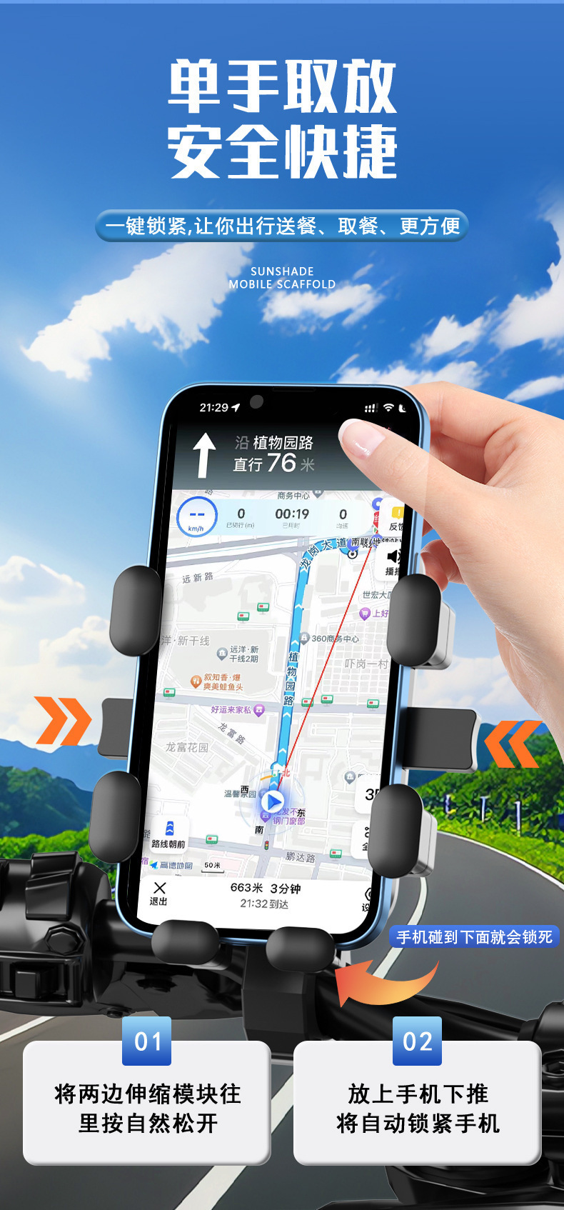 새로운 오토바이 휴대 전화 브래킷 자전거 전기 자동차 내비게이션 브래킷 라이딩 빠른 릴리스 원 버튼 잠금 브래킷스토어 가기