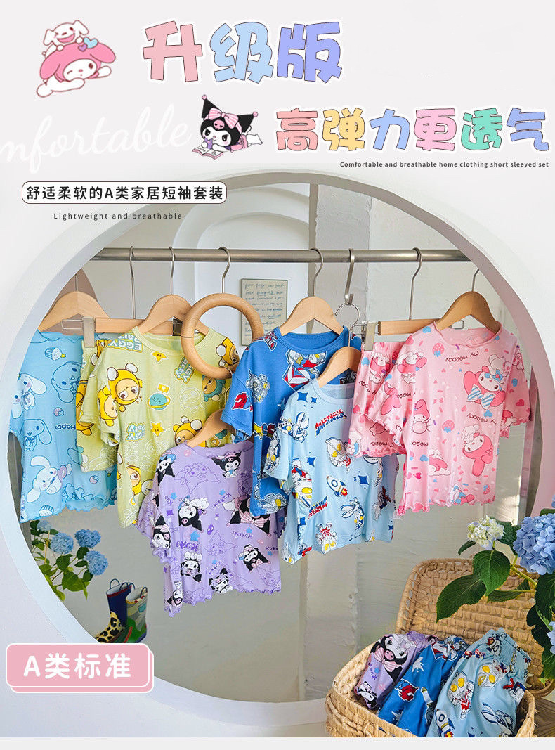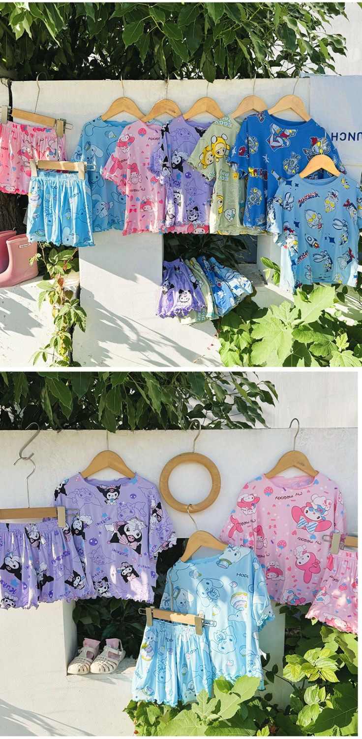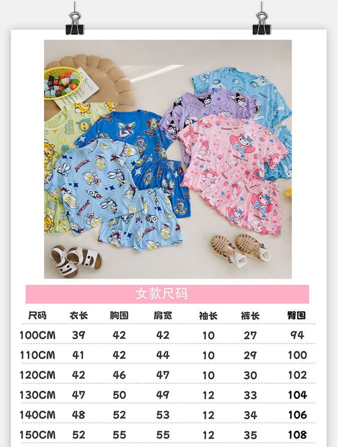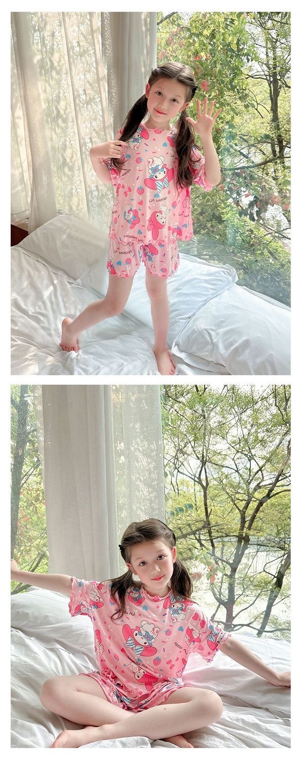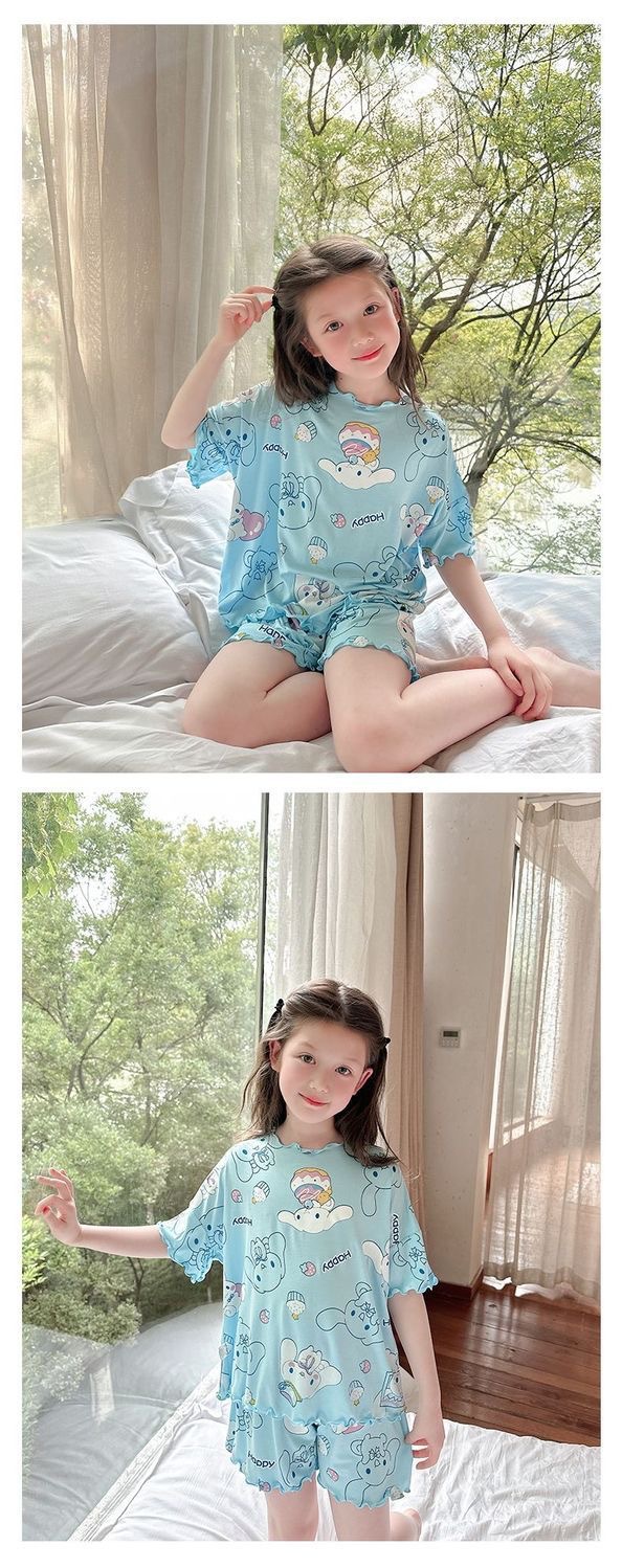 여름 소녀 잠옷 반팔 양복 어린이 가정 옷 만화 귀여운 아기 에어컨 옷 소녀 여름스토어 가기