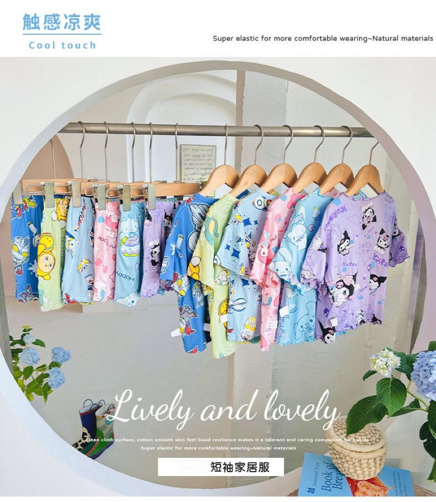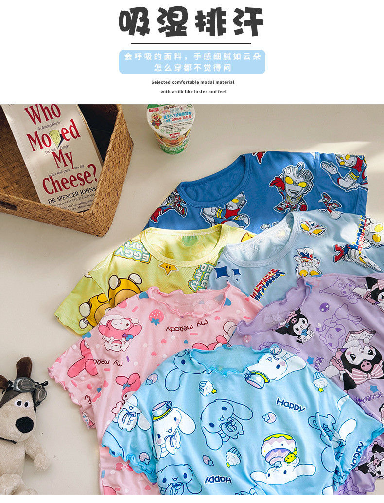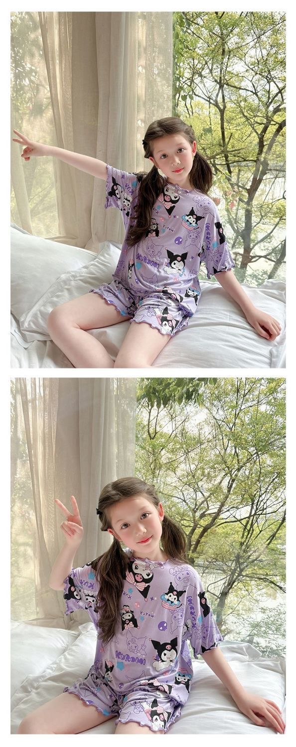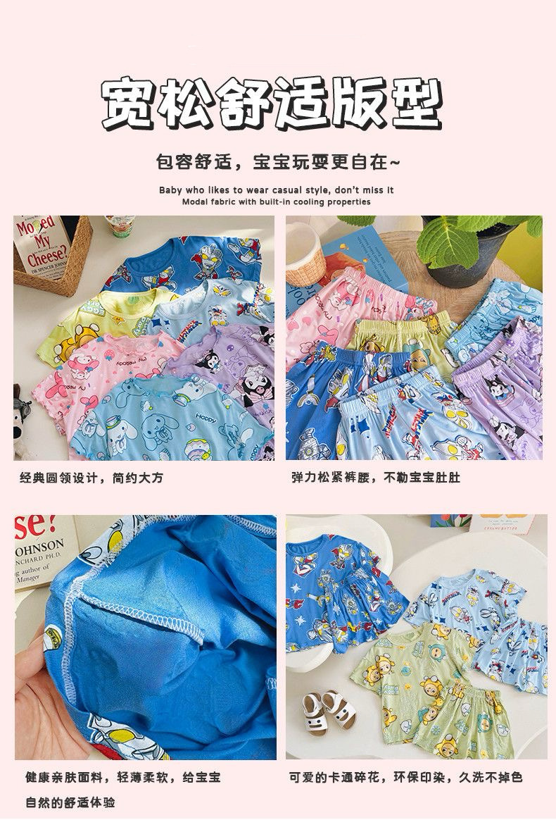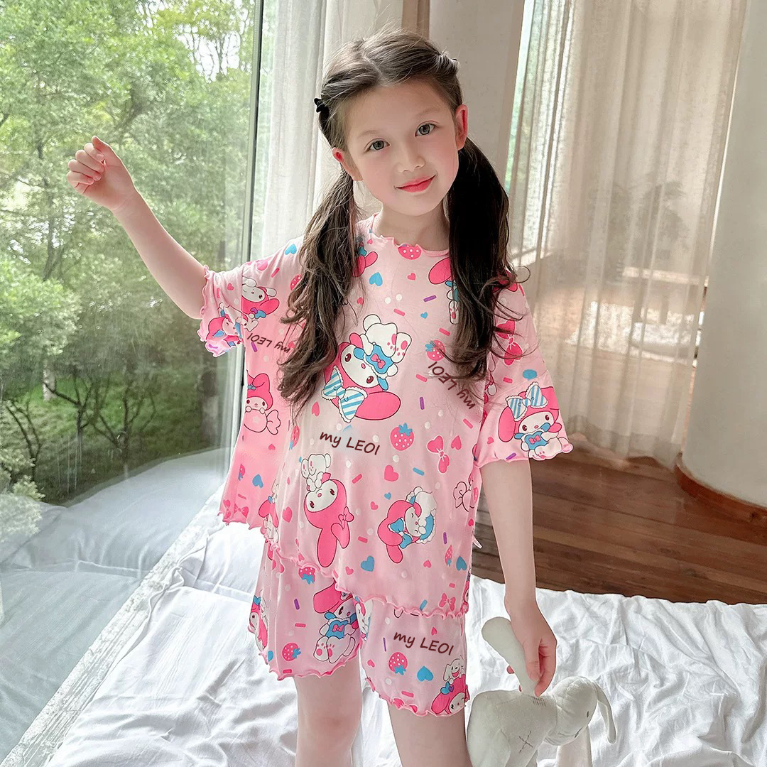 여름 소녀 잠옷 반팔 양복 어린이 가정 옷 만화 귀여운 아기 에어컨 옷 소녀 여름스토어 가기