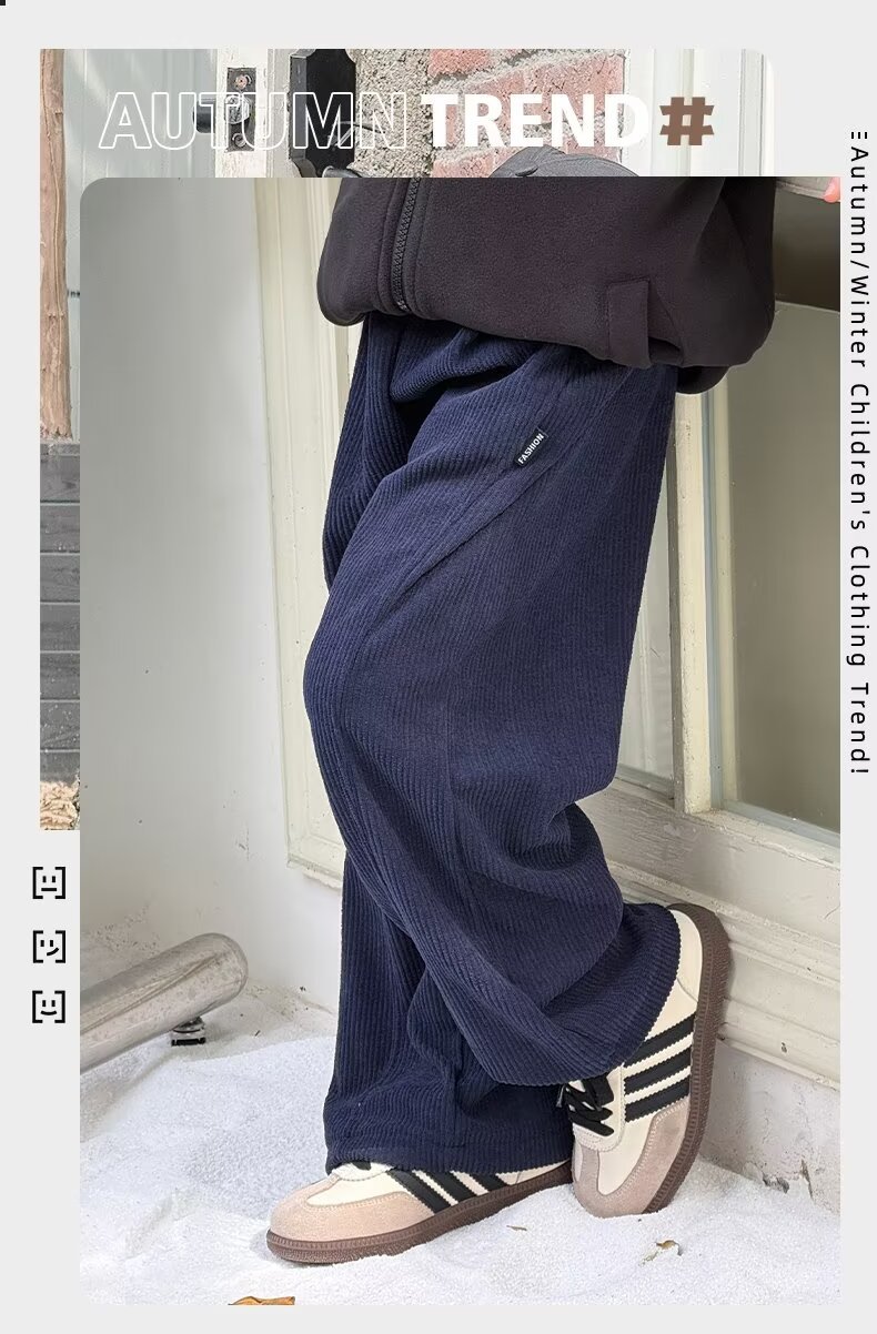 남자들의 가을과 겨울 새로운 어린이 바지 기모 캐주얼 트렌디 올매치 패션 보이즈 바지 남성 아우터웨어