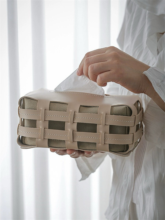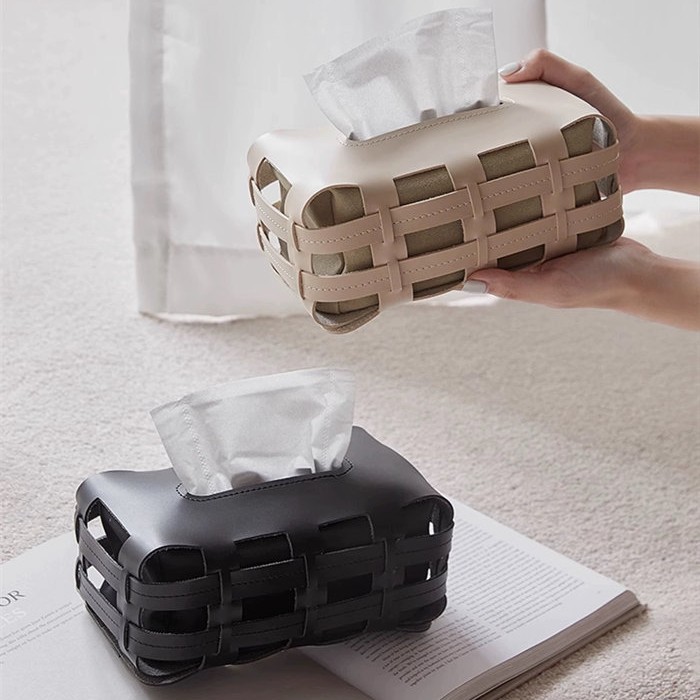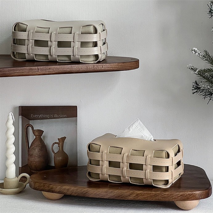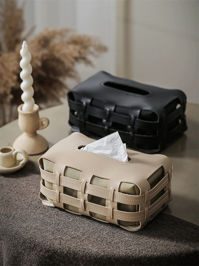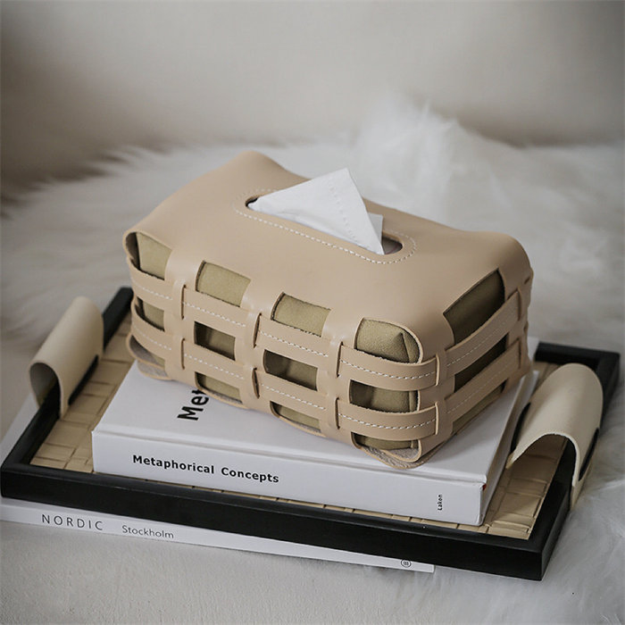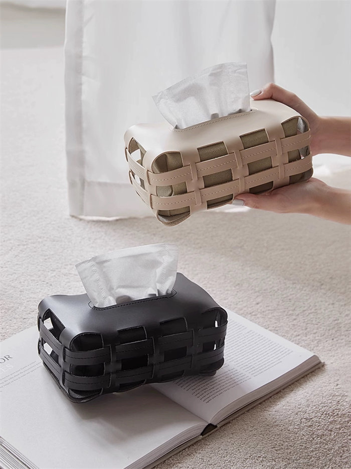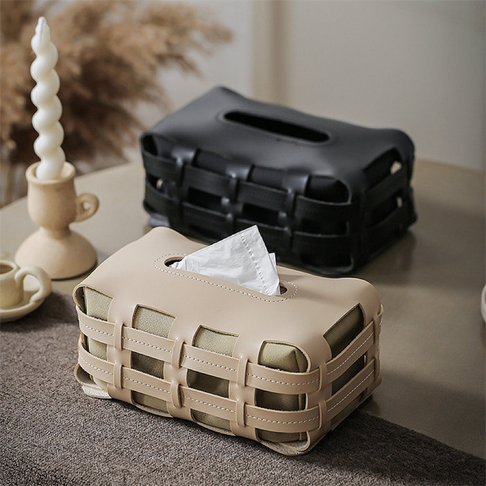 손으로 짠 가죽 빛 고급 티슈 박스 창조적 인 고급 센스 종이 상자 가정용 거실 냅킨 저장 상자