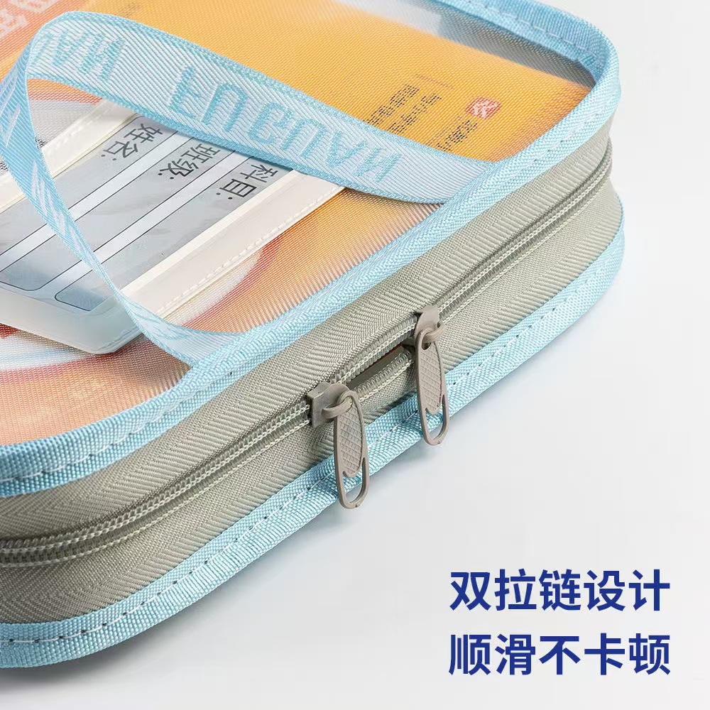 두꺼운 주제 A4 학생 분류 다층 메쉬 휴대용 파일 가방 투명 테스트 용지 L 자형 U 자형 책 보관 가방스토어 가기