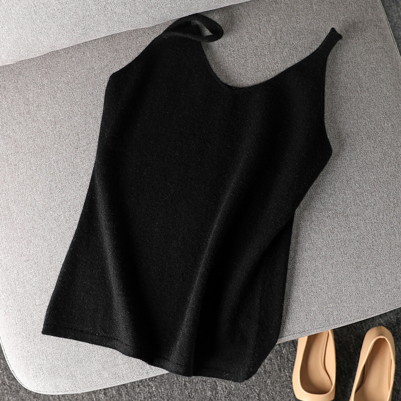 니트 슬링 퓨어 울 조끼 여성 V 넥 봄과 가을 새로운 민소매 베이스 셔츠 근접 피팅 착용 간단한 올 매치 트렌디스토어 가기