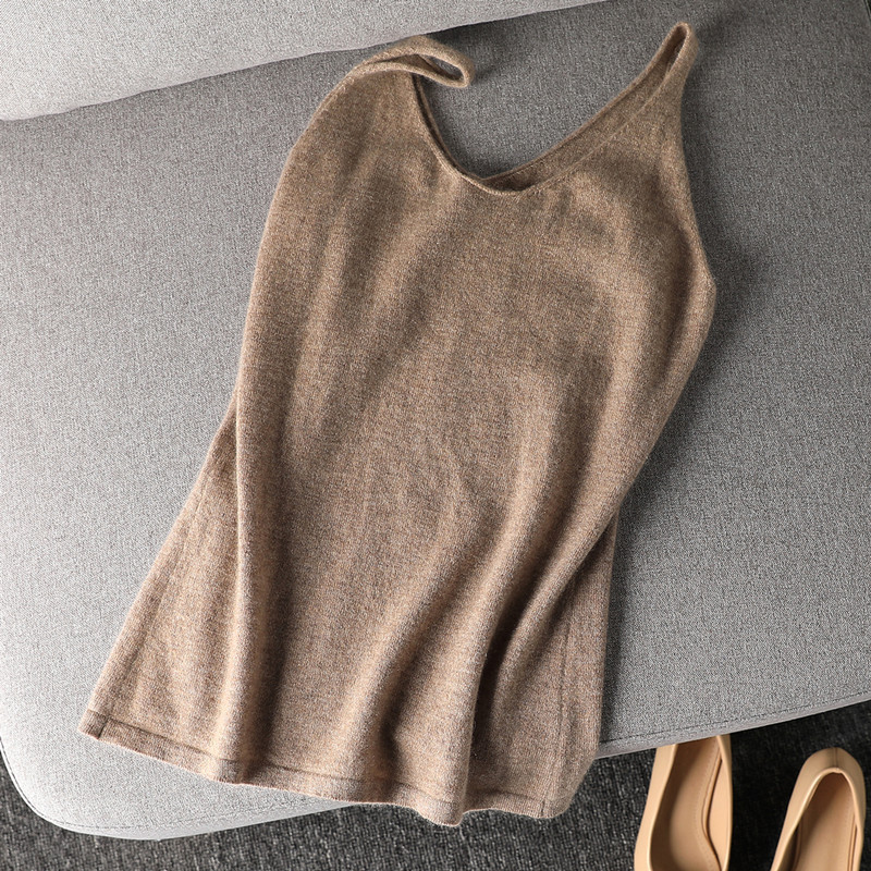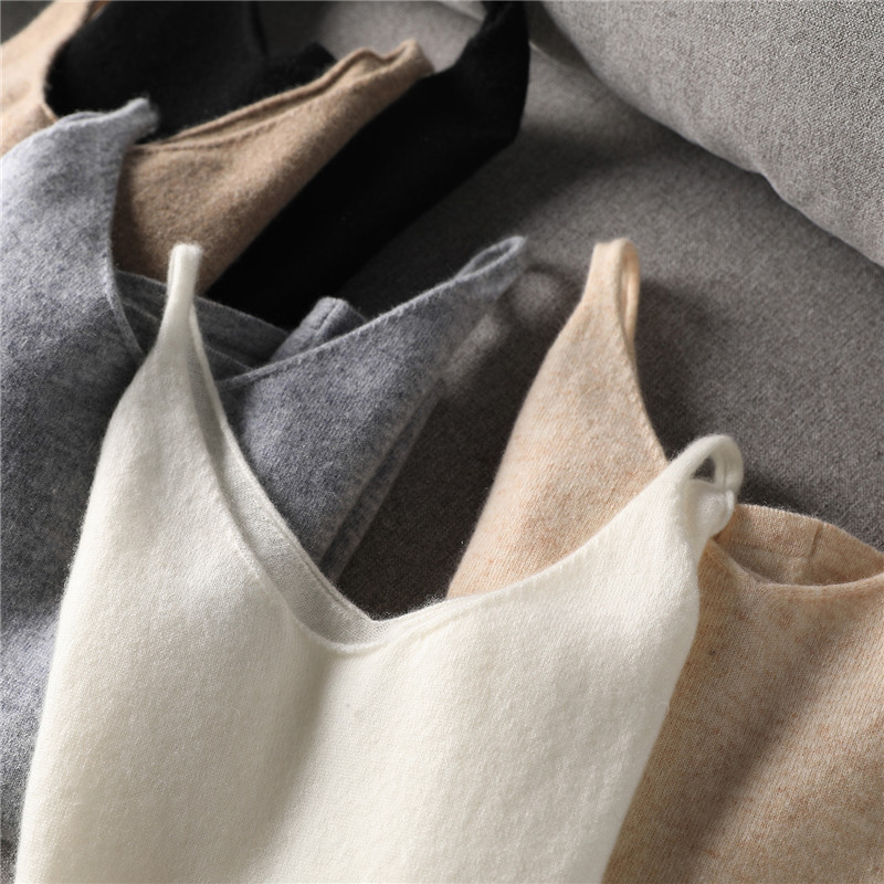 니트 슬링 퓨어 울 조끼 여성 V 넥 봄과 가을 새로운 민소매 베이스 셔츠 근접 피팅 착용 간단한 올 매치 트렌디