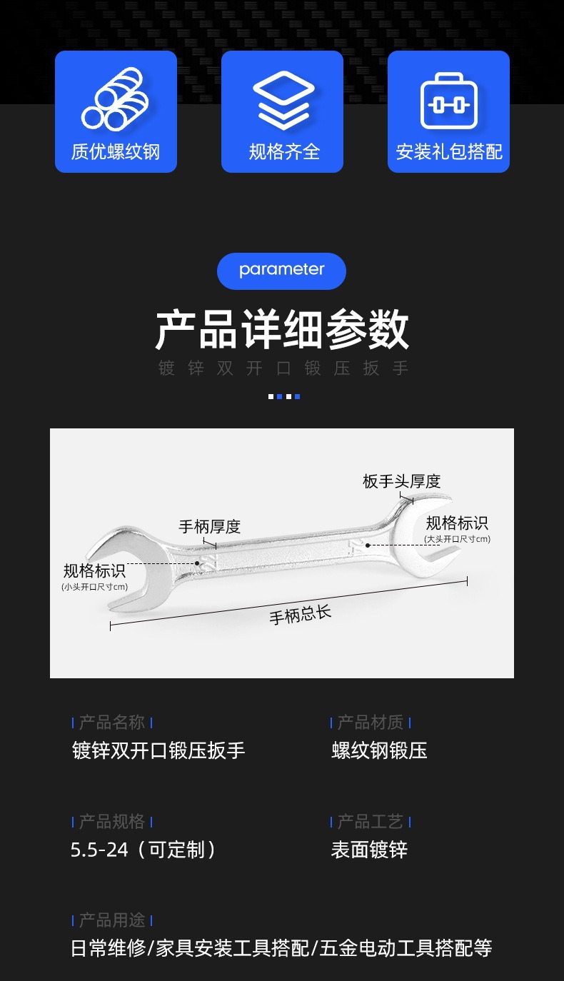 맞춤형 인쇄 및 배송 소형 렌치, 고강도 하드웨어 도구, 이중 용도 아연 도금 이중 개방 단조 렌치 가공스토어 가기