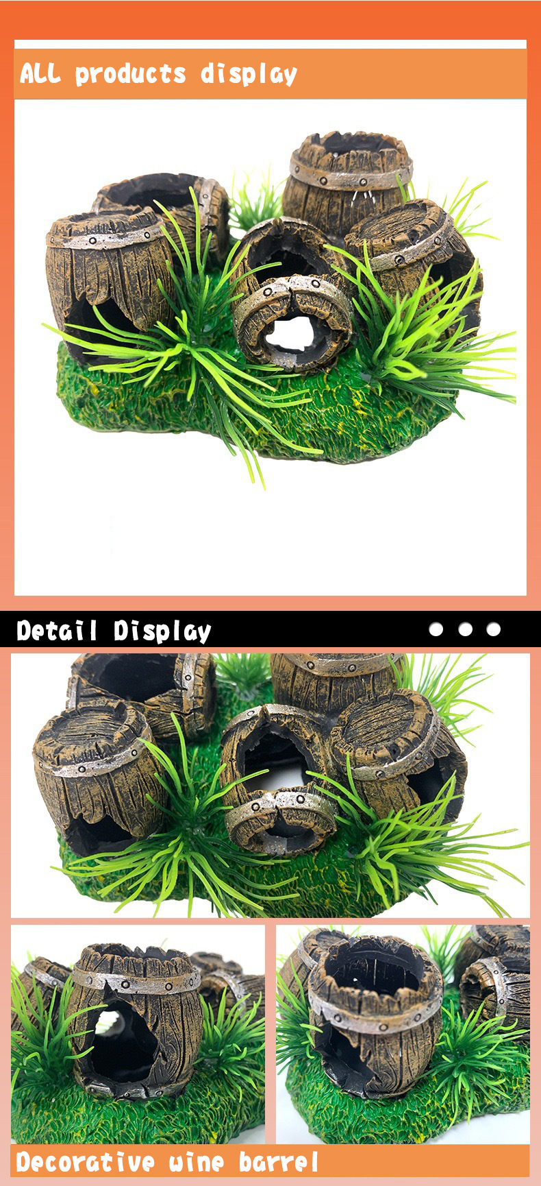 물고기 탱크 장식 풍경 장식품 와인 배럴 수지 공예 물고기와 새우 탈출 구멍 5 배럴 조합 와인 배럴 국경 뜨거운 제품