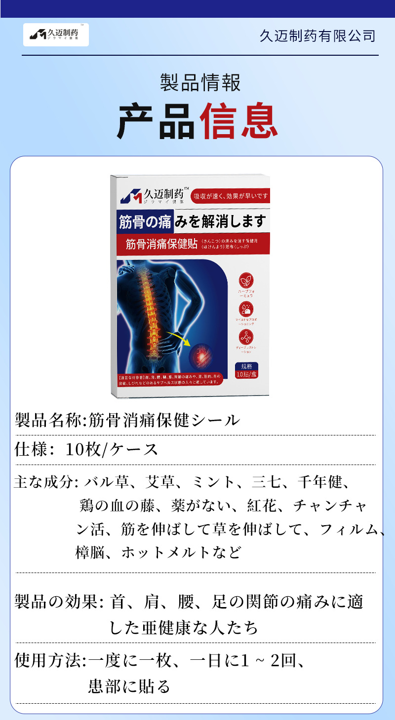 일본식 푸지쿠마이 연고 패치, 요추 패치, 무릎 힘줄관열 패치, 근육 및 뼈 패치, 반월판 통증 완화 패치
