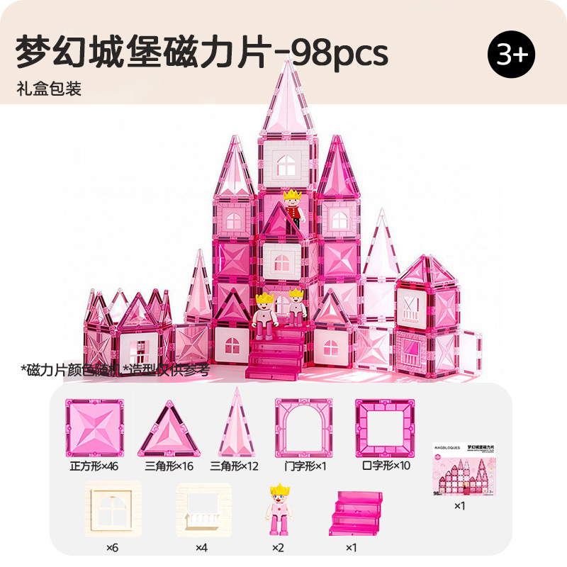 • 【공주 드림랜드】 초대형 자석 캐슬| 98피스 캐슬 세트| 돔 로프트 DIY