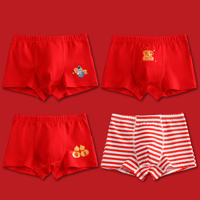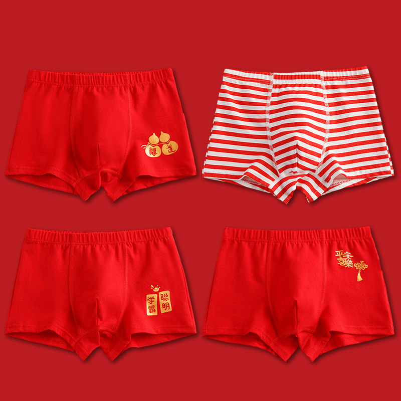 어린이 속옷 소년의 빨간 속옷 새해 복서 바지 뱀의 해의 해