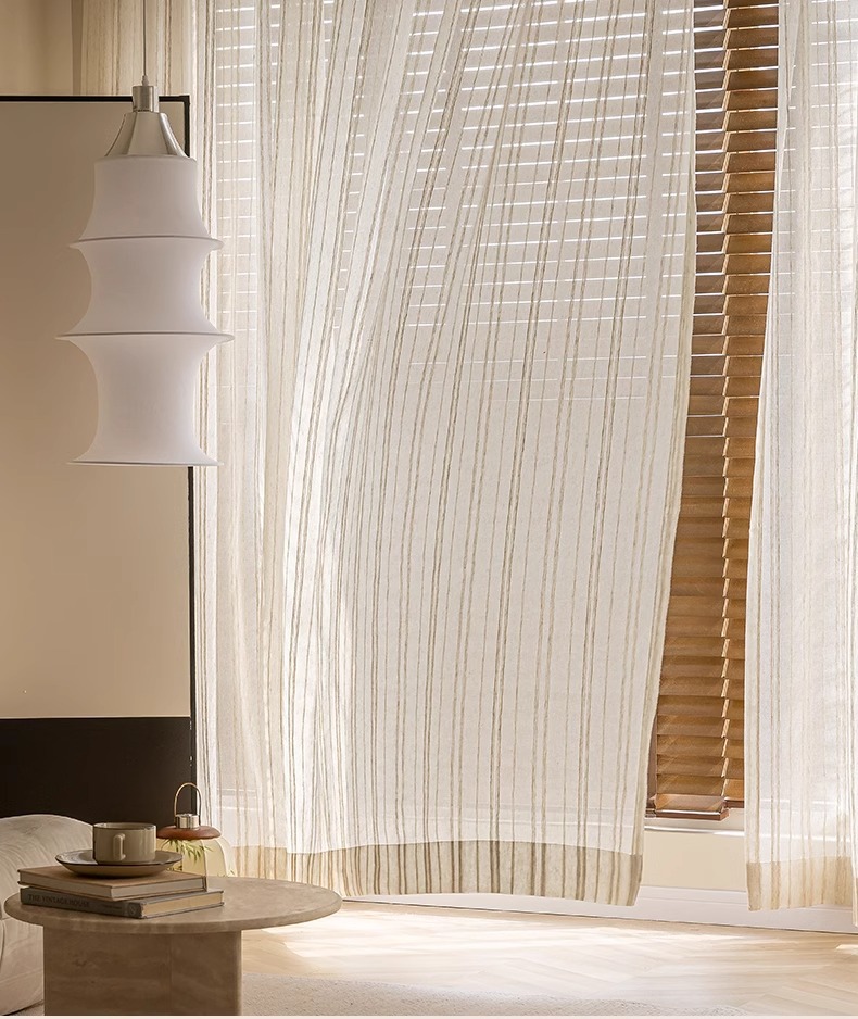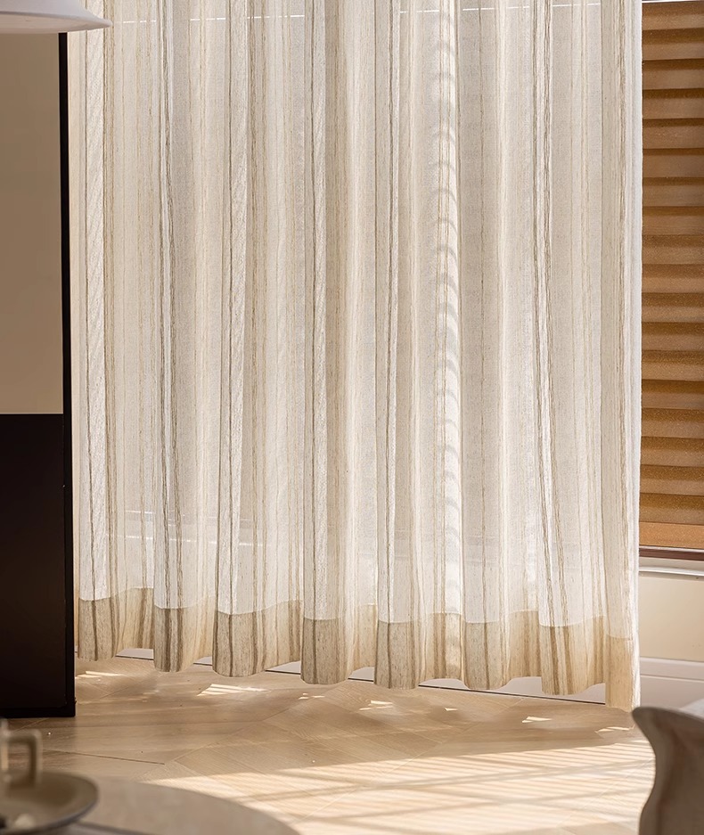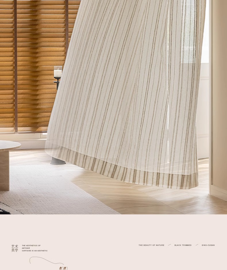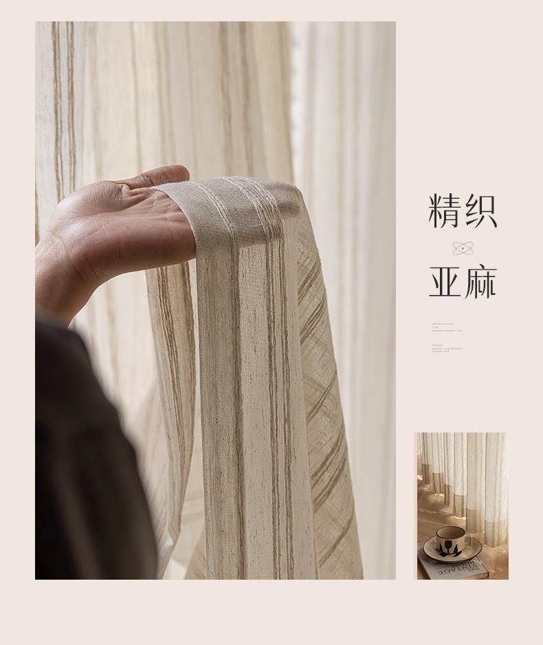 커튼 거즈 커튼 공장 직물 도매 국경 대외 무역 창 화면 일본 줄무늬 아마 원사 로그 나무 대마 원사
